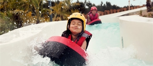 Ausgerüstet mit Bodyboard und Helm geht es unter den wachsamen Augen des Trainer-Teams die wilde Flussfahrt hinunter. Superspaß garantiert!