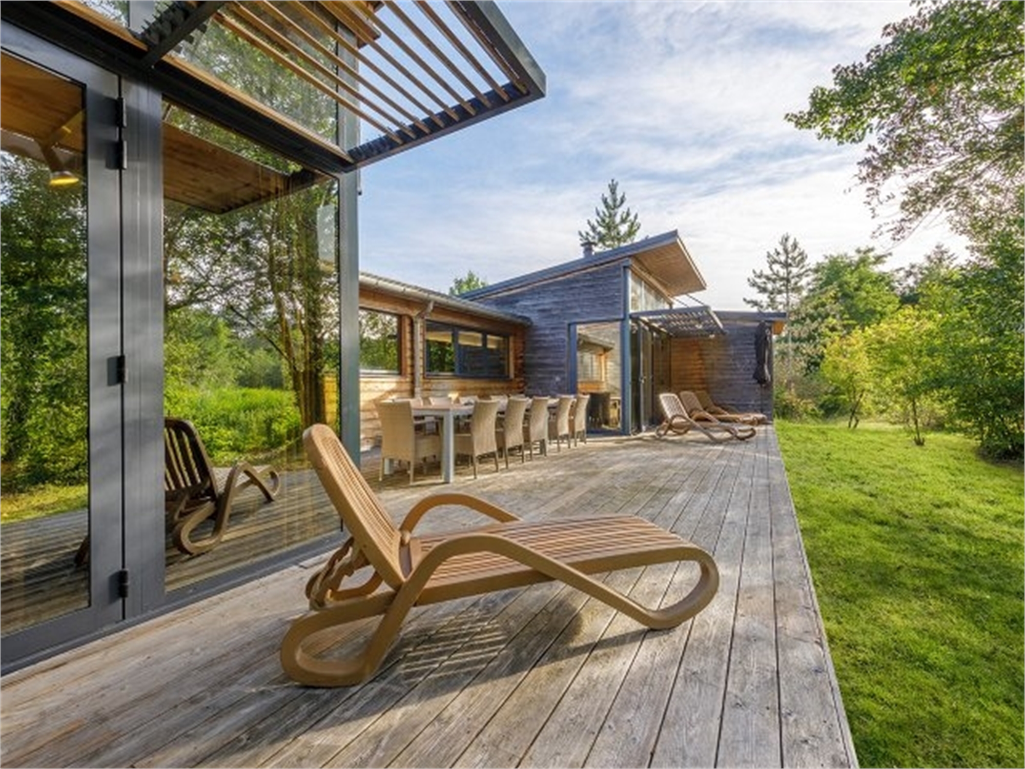 Wohnlichkeit und Luxus gehen in diesem VIP-Haus Hand in Hand. Der Mix aus Holzmaterialien verleiht Ihrem Ferienhaus ein gemütliches Ambiente und fügt es perfekt in die umgebende Natur ein. Dabei genießen Sie jeden Komfort, z.B. im luxuriösen Bad mit Regendusche und Sauna. Ein exzellentes Urlaubsgefühl!