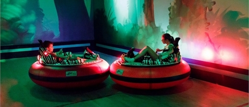 Das sind keine gewöhnlichen Autoscooter, sondern runde und schwankende! Also Kinder, ran ans Steuer, und versucht gar nicht erst, den anderen zu entkommen. Ach was: Immer schön auf die Tube drücken und - wumm, bumm - die anderen zur Seite schieben!