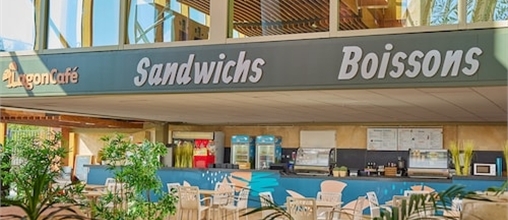 Das Lagon Café im Herzen von Aqua Mundo stillt kleine und große Hungerpausen zwischen zwei Wasserrutschen! Sandwiches, Gebäck, Smoothies, Eiscreme... Tanke Energie und mache weiter mit dem Spaß!