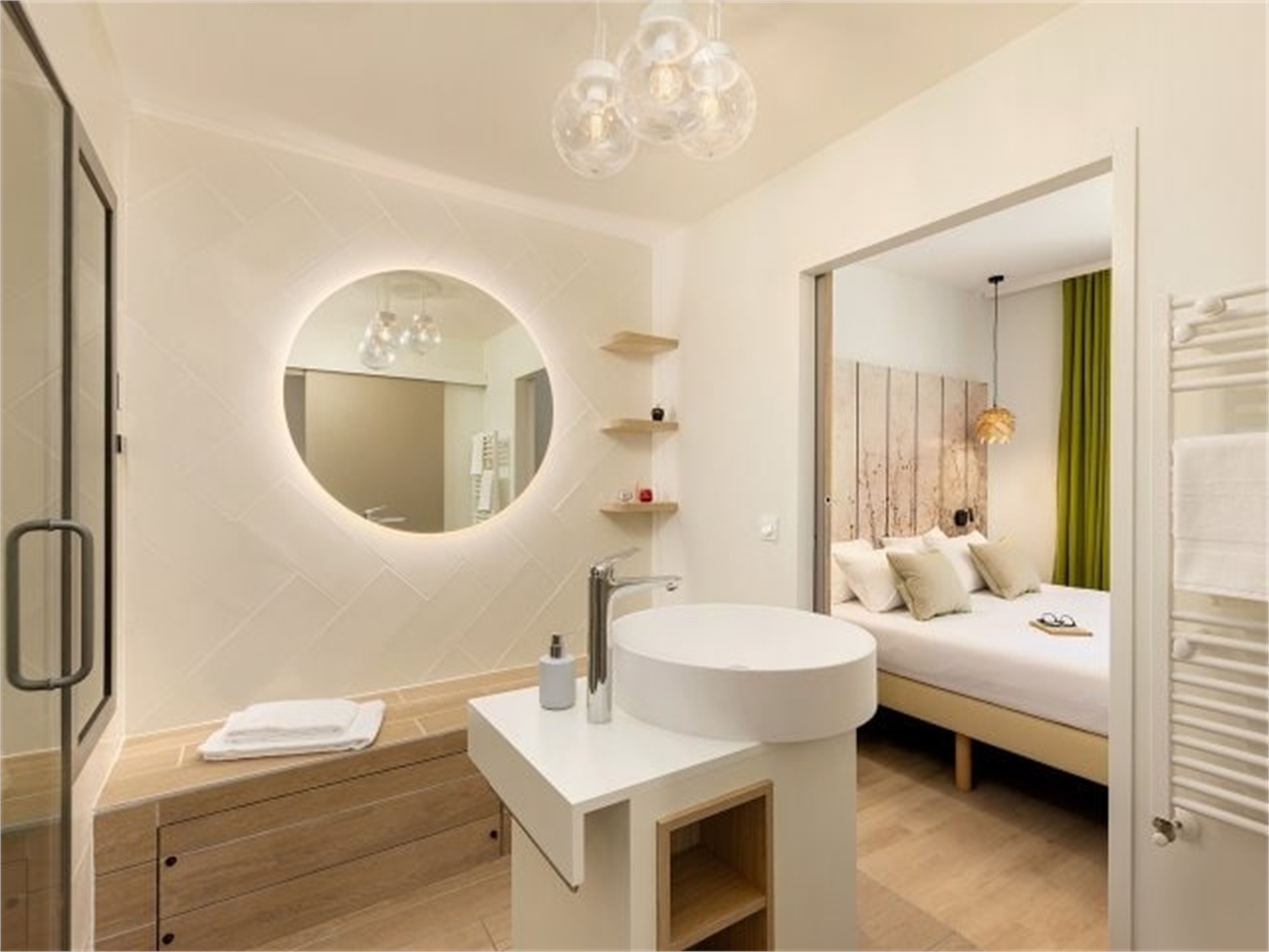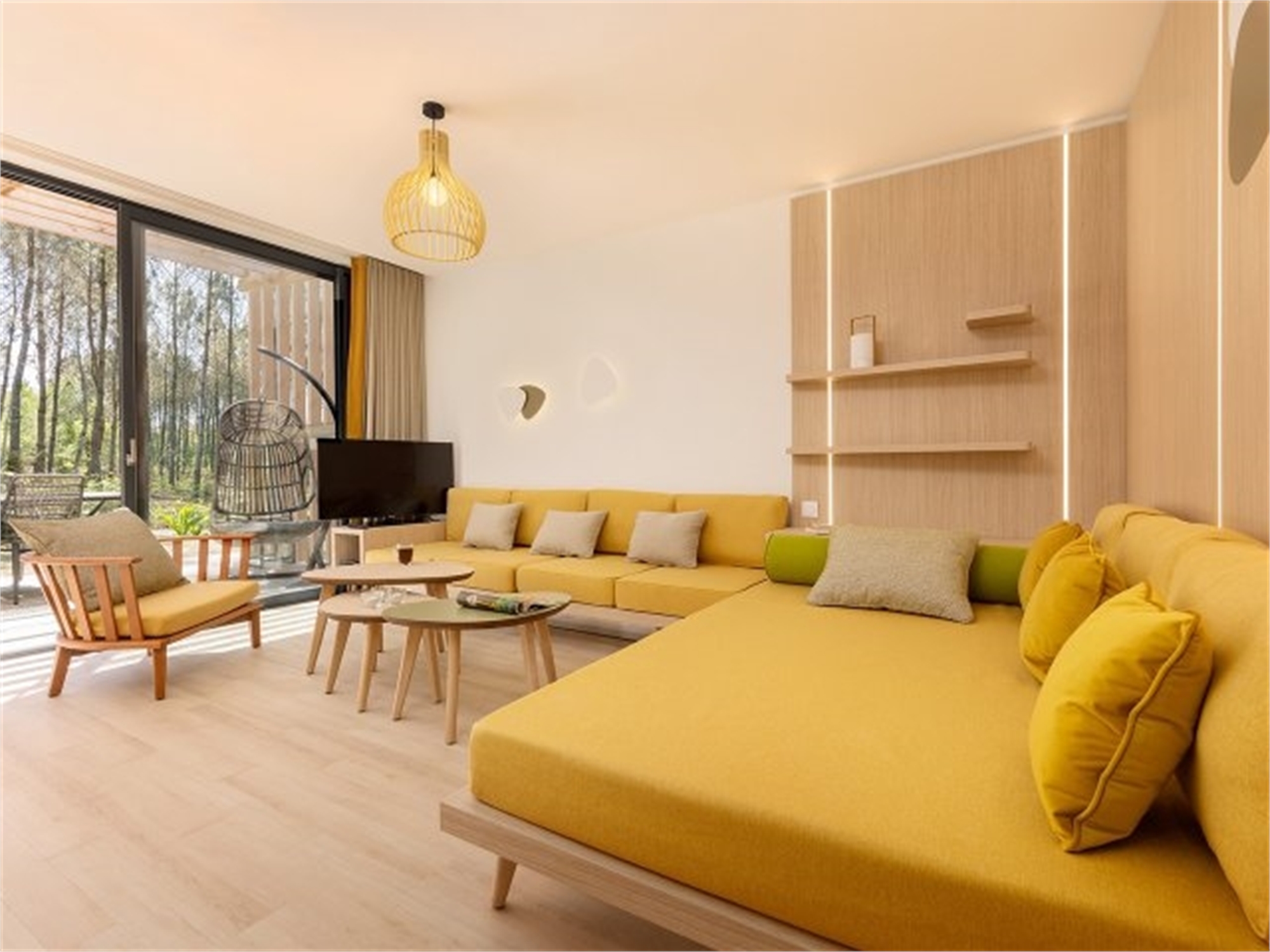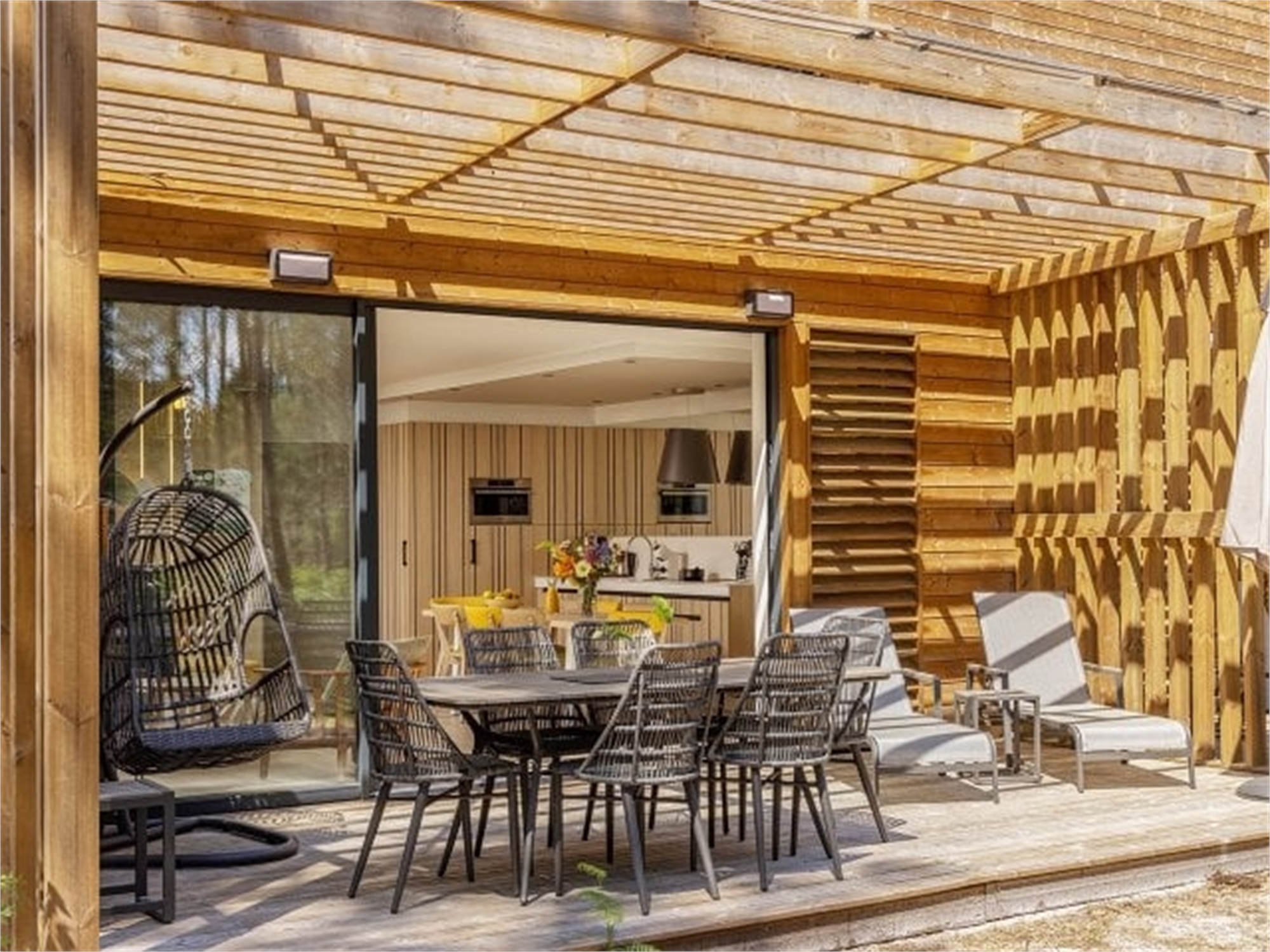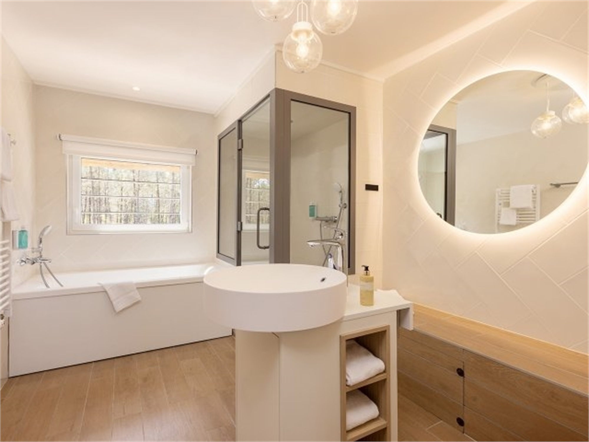 Die großzügigen Wohnräume des VIP-Ferienhauses haben große Fenster mit Blick über eine Privat-Terrasse in die freie Natur. Genießen Sie Ihr Badezimmer mit Whirlpool und Hamam sowie die exklusiven Dienstleistungen.