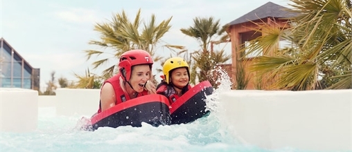 Ausgerüstet mit Bodyboard und Helm geht es unter den wachsamen Augen des Trainer-Teams die wilde Flussfahrt hinunter. Superspaß garantiert!