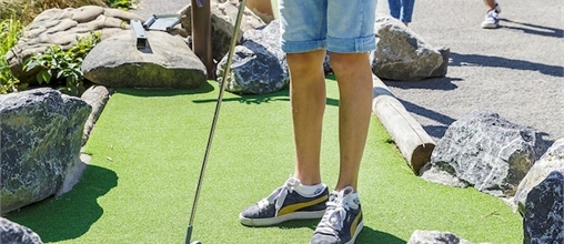Mitten im Wald gelegen und mit Hindernissen aus Ästen und Holz befindet sich dieser Minigolfplatz in perfekter Harmonie mit der Natur. Ein idealer Zeitvertreib mit Familie oder Freunden!