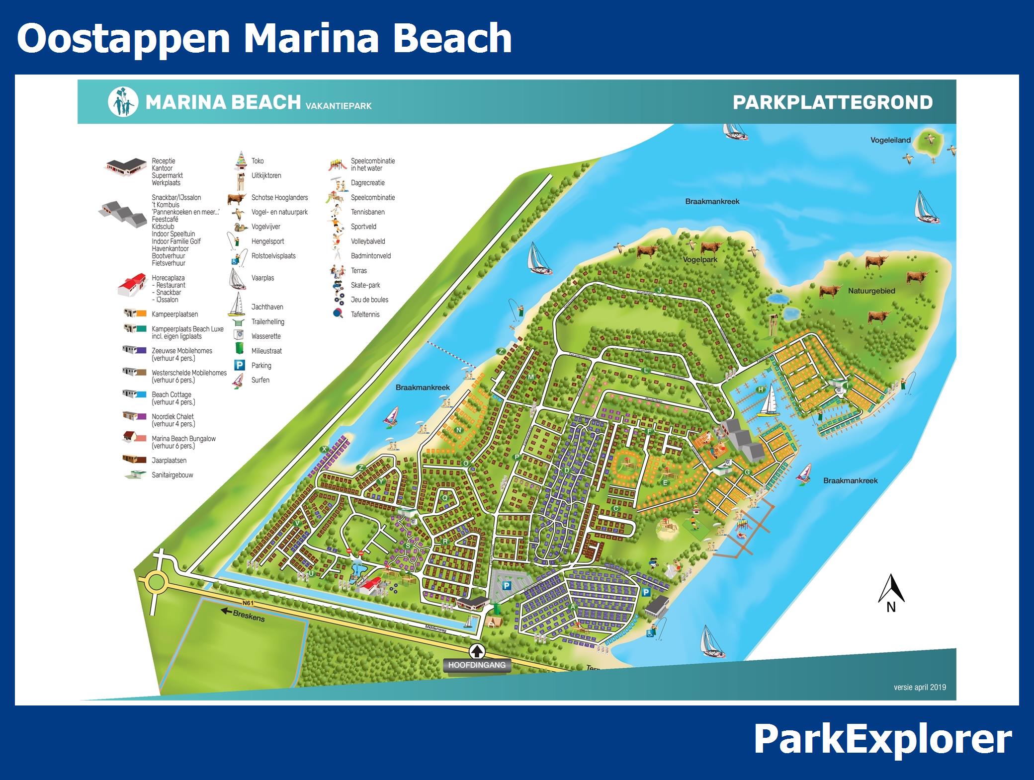 Aktueller und übersichtlicher Parkplan von Oostappen Marina Beach mit alle Unterkünfte und Einrichtungen, auch als PDF herunterladbar.