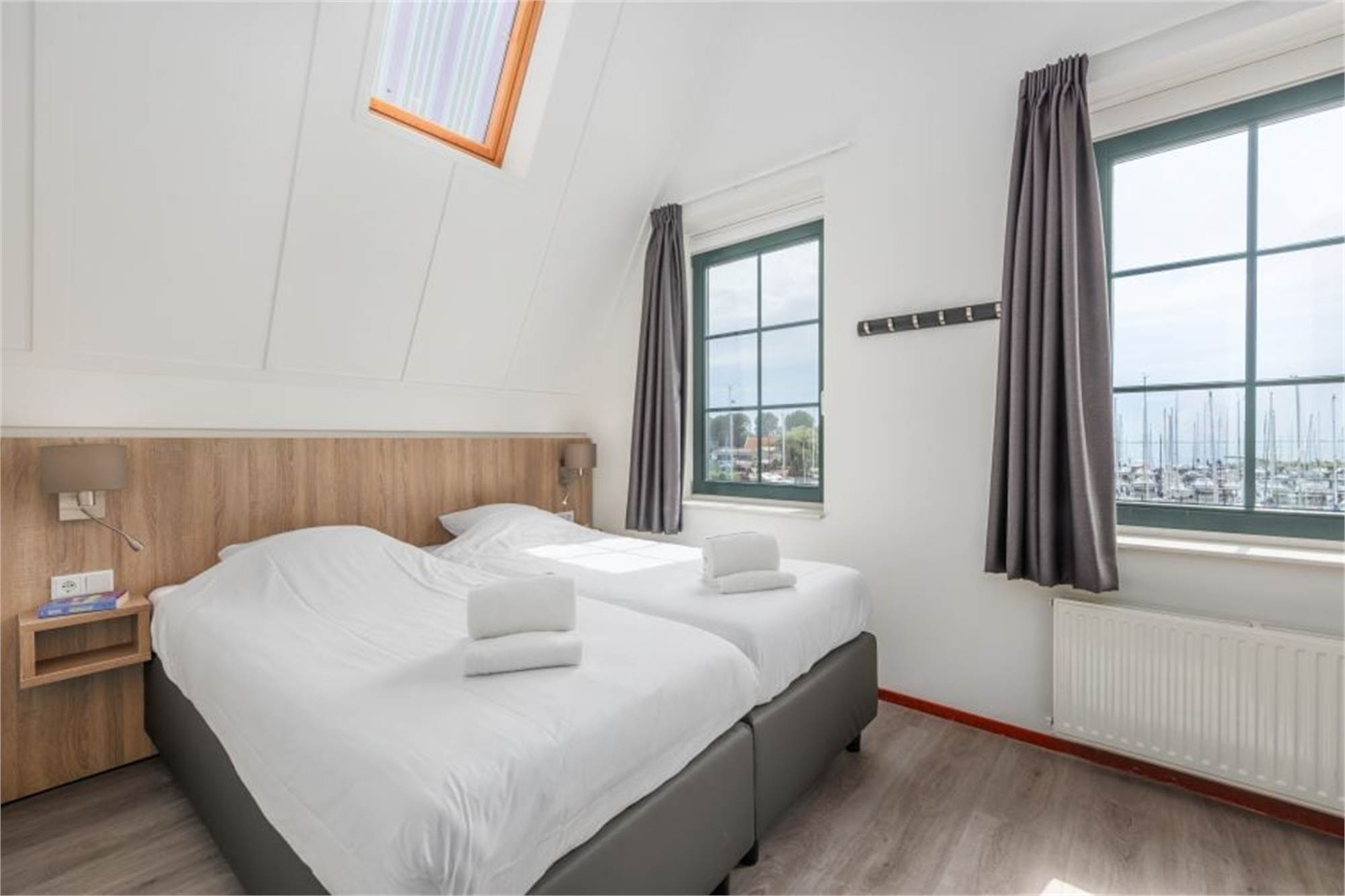 Dieser versetzt gebaute Bungalow eignet sich für 4 Personen. Im ersten Stock befindet sich das Wohnzimmer mit Smart-TV, eine Küche mit u.a. Kaffeepadmaschine, Mikrowelle und Geschirrspüler und ein separates Gäste-WC. Vom Wohnzimmer aus betrittst Du den mit Gartenmöbeln ausgestatteten Balkon mit Blick auf den Jachthafen. Im zweiten Stock befinden sich 2 Schlafzimmer mit je 2 Einzelbetten und 1 Badezimmer mit Dusche. WiFi kannst Du kostenlos nutzen.