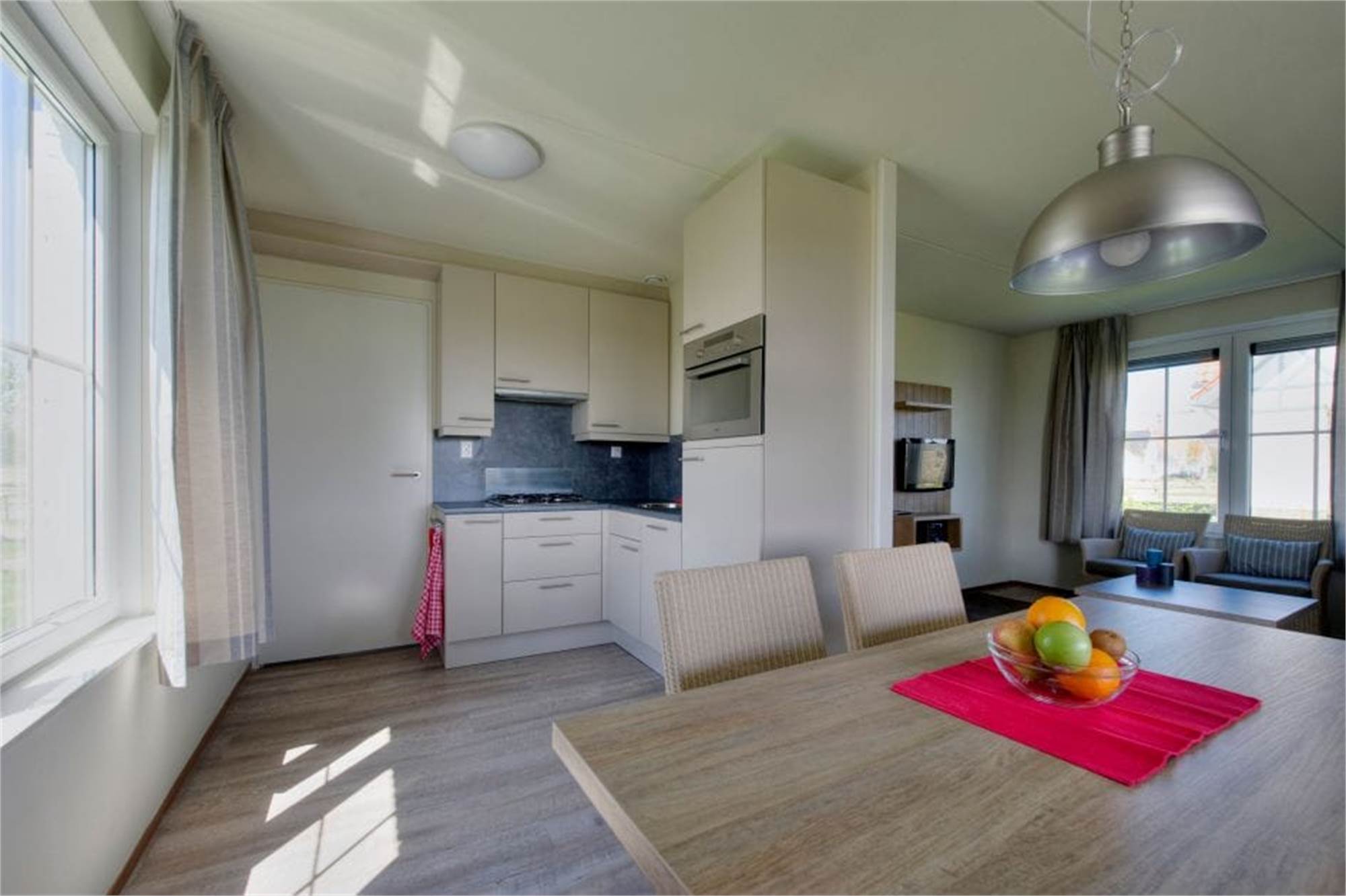 Diese luxuriöse freistehende Villa, mit Lage am Wasser, eignet sich für 4 und bietet spezielle Einrichtungen für Teenager. Über den Flur gelangen Sie in das helle Wohnzimmer mit Fußbodenheizung und Flügeltüren zur überdachten Terrasse. In der Unterkunft befindet sich eine Playstation 4. Es gibt eine komplett eingerichtete Küche mit Geschirrspüler, Kombi-Mikrowelle, Kühl- und Gefrierkombination und eine Toilette im Erdgeschoss. Im Obergeschoss befinden sich zwei Schlafzimmer, ein Badezimmer mit Dusche, eine separate Toilette und eine Infrarotsauna. Wenn Sie Fahrräder mit in den Urlaub nehmen, können Sie diese im Abstellraum draußen einschließen. Die Nutzung von WiFi ist gratis.