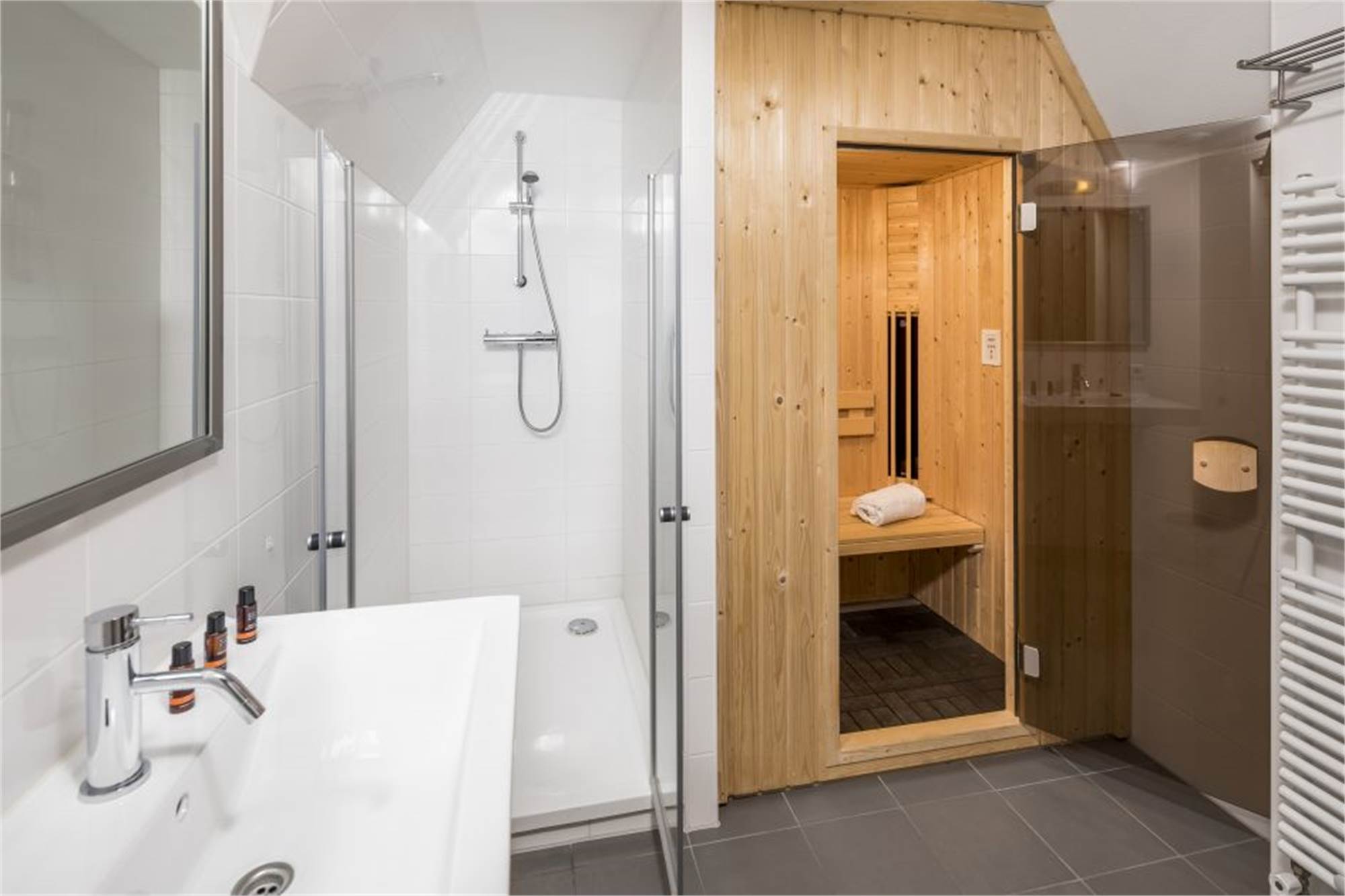 Diese luxuriöse freistehende Villa eignet sich für 6 Personen. Über den Flur erreichen Sie das helle Wohnzimmer mit Fußbodenheizung und Flügeltüren zur überdeckten Terrasse. Eine vollständig eingerichtete Küche mit Geschirrspüler, Kombi-Mikrowelle und Kühl-/Gefrierkombination und eine separate Toilette sowieso ein Schlafzimmer mit TV und Badezimmer befindet sich im Erdgeschoss. Im Obergeschoss befinden sich zwei Schlafzimmer, ein Badezimmer mit Dusche, ein Badezimmer mit Badewanne, eine Infrarotsauna und eine separate Toilette. Wenn Sie Fahrräder mit in den Urlaub bringen, können Sie diese im Fahrradschuppen unterstellen. Die Nutzung von WiFi ist gratis.