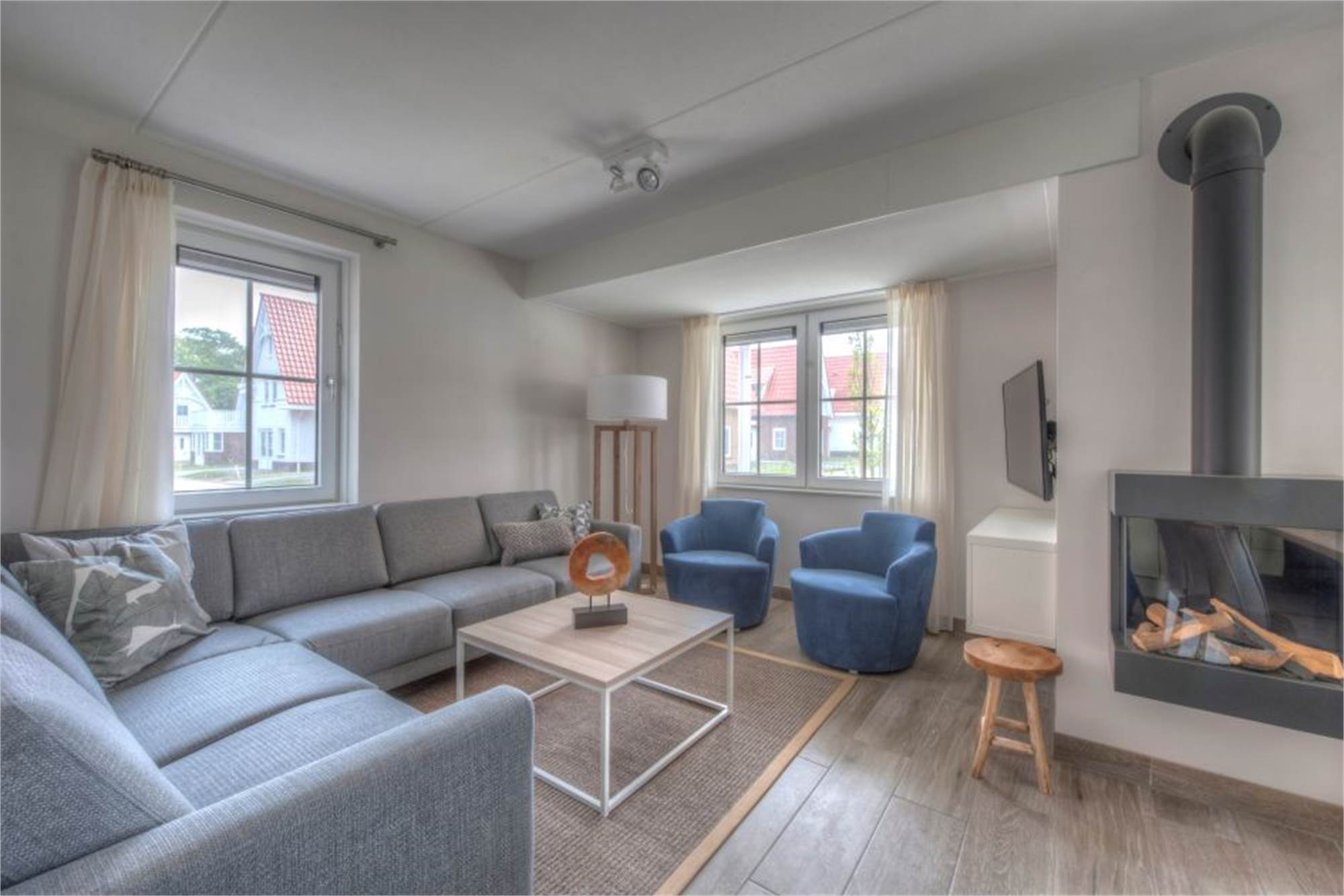 Diese luxuriöse freistehende Villa eignet sich für 9 Personen. Im Erdgeschoss finden Sie ein großes Wohnzimmer mit Fußbodenheizung, Smart-TV und dekorativem Kamin, eine Küche mit u. a. Geschirrspüler, Kombi-Mikrowelle und Nespresso-Maschine, ein Schlafzimmer mit Einzel-Boxspringbetten sowie ein Badezimmer mit Dusche. Im Obergeschoss befinden sich drei Schlafzimmer mit Einzel-Boxspringbetten, drei Badezimmer mit Dusche und eine separate Toilette. Die Villa bietet außerdem eine Badewanne, eine Waschmaschine, einen Trockner und gratis WiFi. Es gibt einen Garten mit Lounge-Set sowie Parkmöglichkeiten für zwei Autos.