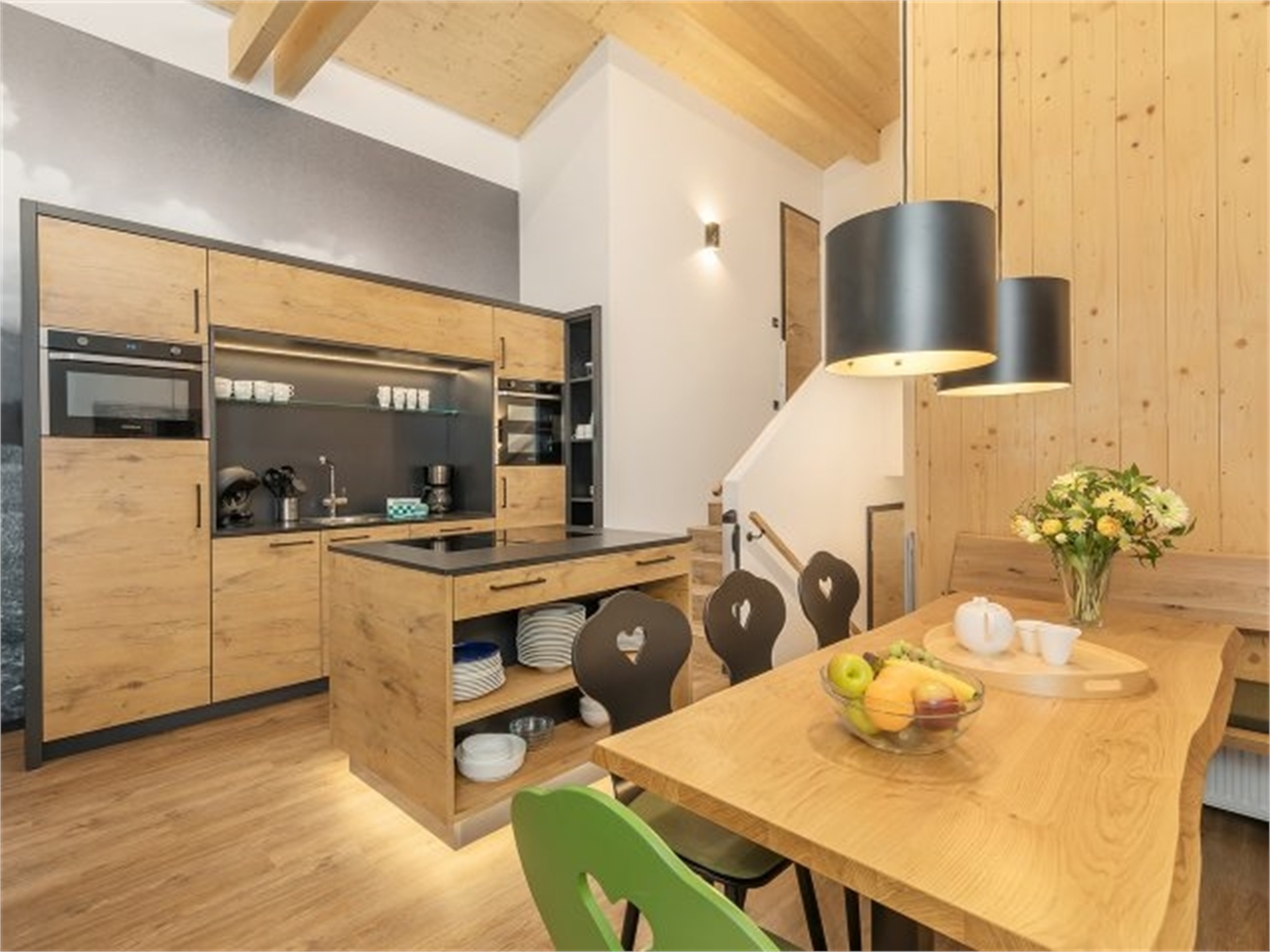 Ein regionaltypischer Heuschober stand Pate für Ihr Exclusive-Ferienhaus: Die Architekten haben ihm einen modernen Touch verliehen mit erstklassigen Holzelementen. Dazu genießt du Luxus pur - von der Küche übers Bad bis zur Außenterrasse. Alles für herrlich lange gemütliche Abende ...