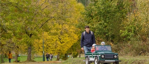 In den Jeeps ist Platz für zwei Kinder. Sie fahren allein, im Schritttempo, aber dank einer Fernbedienung behalten Sie die Kontrolle.