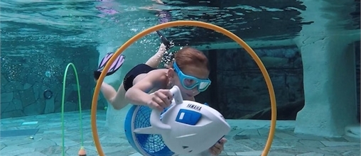 Mit unserem Aqua Scooter gleitest du mühelos durchs Wasser im Aqua Mundo. Durchtauche spannende Parcours, selbst die Wellen und Strömungen können dich nicht stoppen.