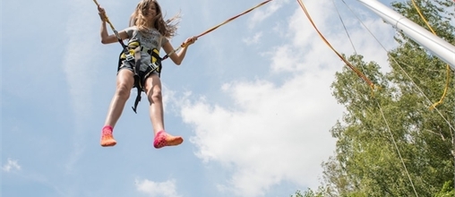 Das Bungee Trampolin ist eine Kombination aus Bungee-Bändern und Trampolin. So können Sie auf absolut sichere Weise besonders hoch springen und sogar Saltos schlagen. Ein tolles Erlebnis für Erwachsene und Kinder.