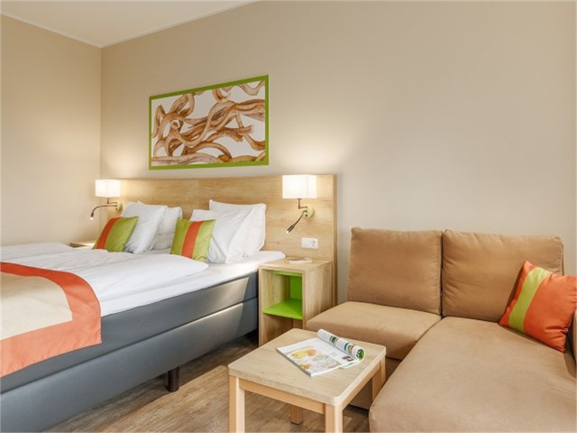 Für das absolute Urlaubsgefühl: Kombinieren Sie die Vorteile eines Ferienparks mit dem Komfort eines Hotels. Die Hotelzimmer verfügen über komfortable Betten, Fernseher, Badezimmer mit Badewanne und Dusche, eine Terrasse und die Extra-Leistungen eines Hotels.