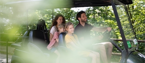 Mit dem E-Car gelangen Sie bequem von Ihrem Ferienhaus zum Market Dome. Praktisch, um auch die Tasche für das Schwimmbad oder Ihre Einkäufe zu transportieren!