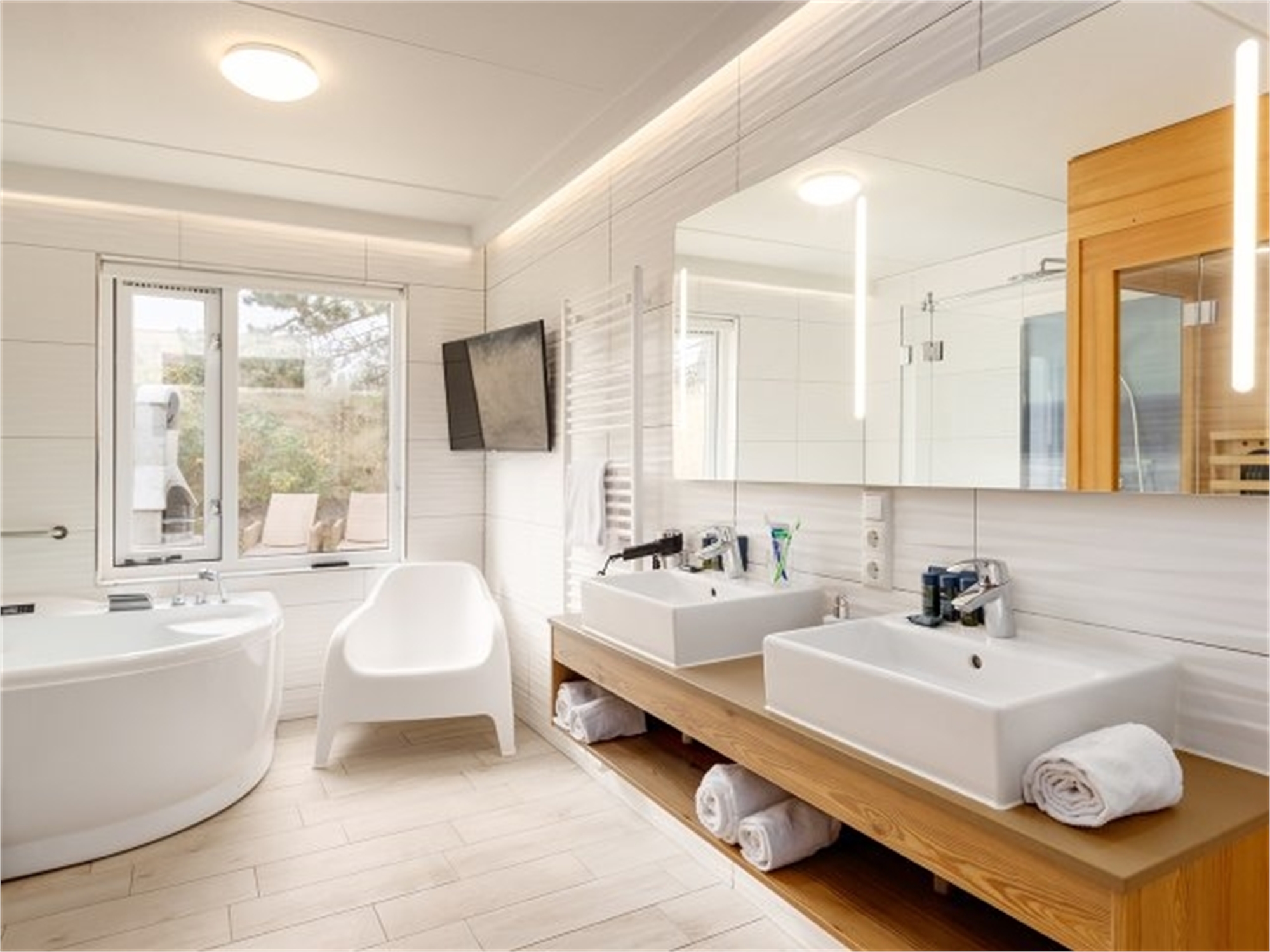Wenn du dich wirklich verwöhnen möchtest, dann wähle ein VIP-Ferienhaus. Deine Betten sind bei der Ankunft bereits bezogen und Handtücher liegen in deinem Ferienhaus bereit. Genieße das luxuriöse Badezimmer mit Handseife und Duschgel.
