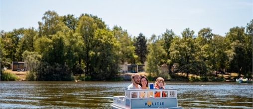 Als Elternteil sitzt man hinter dem Kind und kann beim Steuern eingreifen. Boote sind ausgelegt für 2 Kinder und einen Erwachsenen.