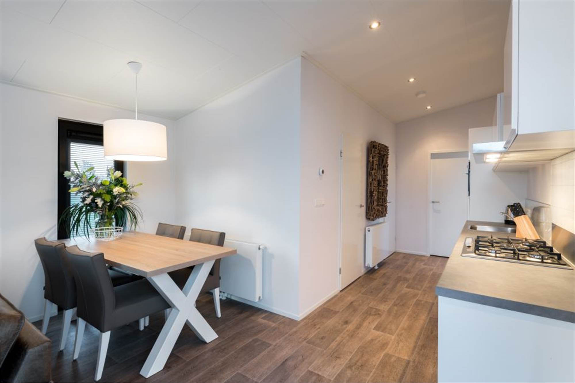 Dieser freistehende, ebenerdige Bungalow eignet sich für 4 Personen. Das Wohnzimmer bietet eine gemütliche Sitzecke mit dekorativem Kamin, Smart-TV und Glas-Schiebetüren zur Terrasse. Die Küche ist u. a. mit Geschirrspüler, Kombi-Mikrowelle und Kaffeemaschine ausgestattet. Der Bungalow verfügt über 2 Schlafzimmer, eins davon mit 2 Einzelbetten und eins mit Doppelbett. Es gibt ein separates Gäste-WC und 1 Badezimmer mit Regendusche sowie eine Wasmaschine/Trockner. Im Außenbereich finden Sie eine möblierte Terrasse, eine Ladestation für Elektrofahrräder und mindestens 1 Parkplatz. Die Nutzung von WiFi ist gratis.