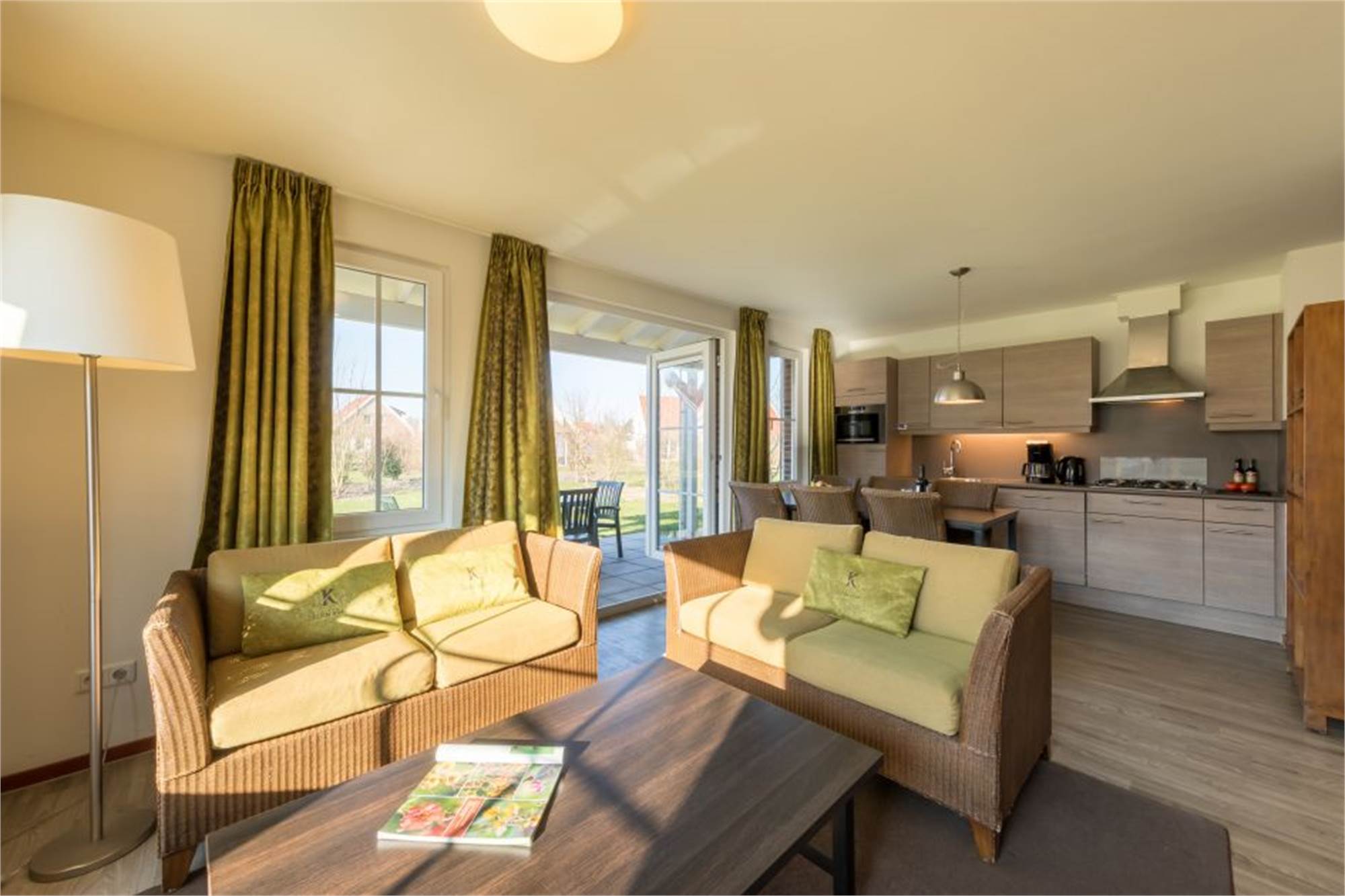 Diese freistehende luxuriöse Villa im Ferienpark Résidence Klein Vink eignet sich für 6 Erwachsene und 1 Baby/Kleinkind. Durch den Flur gelangen Sie in das helle Wohnzimmer mit Flügeltüren zur Terrasse. Die Küche ist mit hochwertigen Einbaugeräten, einschließlich Geschirrspüler, ausgestattet.