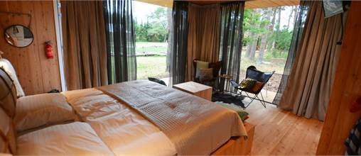 Dieses ebenerdige Chalet eignet sich für 2 Personen und ist mit Doppelbett, TV-Gerät und Klimaanlage ausgestattet. Außerdem gibt es eine kleine Küche mit u. a. eine Doppel-Induktionskochplatte mit zwei Kochplatten und ein Kühlschrank mit Gefrierfach. Es gibt ein Badezimmer mit Dusche und Toilette und eine möblierte Terrasse im Außenbereich. Sie finden einen Parkplatz in der Nähe der Unterkunft und die Nutzung von WiFi ist gratis.