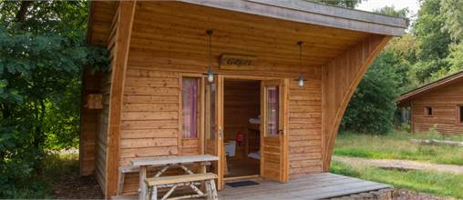 Praktisch eingerichtete, ebenerdige Blockhütte für 4 Personen. Die Unterkunft bietet einen gemeinsamen Schlaf- und Wohnbereich. Beim Eintreten finden Sie links und rechts ein Etagenbett mit Bettwäsche für jeweils eine Person. In der Mitte des Raumes befindet sich der Essbereich. Bitte nutzen Sie die sanitären Einrichtungen im allgemeinen Sanitärgebäude. Die Blockhütte verfügt über einen Wasser- und Abwasseranschluss. Im Außenbereich finden Sie eine überdachte Veranda mit robusten Gartenmöbeln. Es gibt eine Parkmöglichkeit in der Nähe der Hütte und die Nutzung von WiFi ist gratis. Haustiere sind hier nicht gestattet.