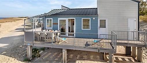 Die Beach Houses verfügen über eine Terrasse, die über eine Treppe erreichbar ist. Die Terrasse lässt sich mithilfe eines Treppengitters abschließen. Ein Kinderbett kann nur im Wohnzimmer aufgestellt werden. Sie können den Bollerwagen (während der Öffnungszeiten) kostenlos bei unseren Kollegen beim Fahrradvermietung abholen.