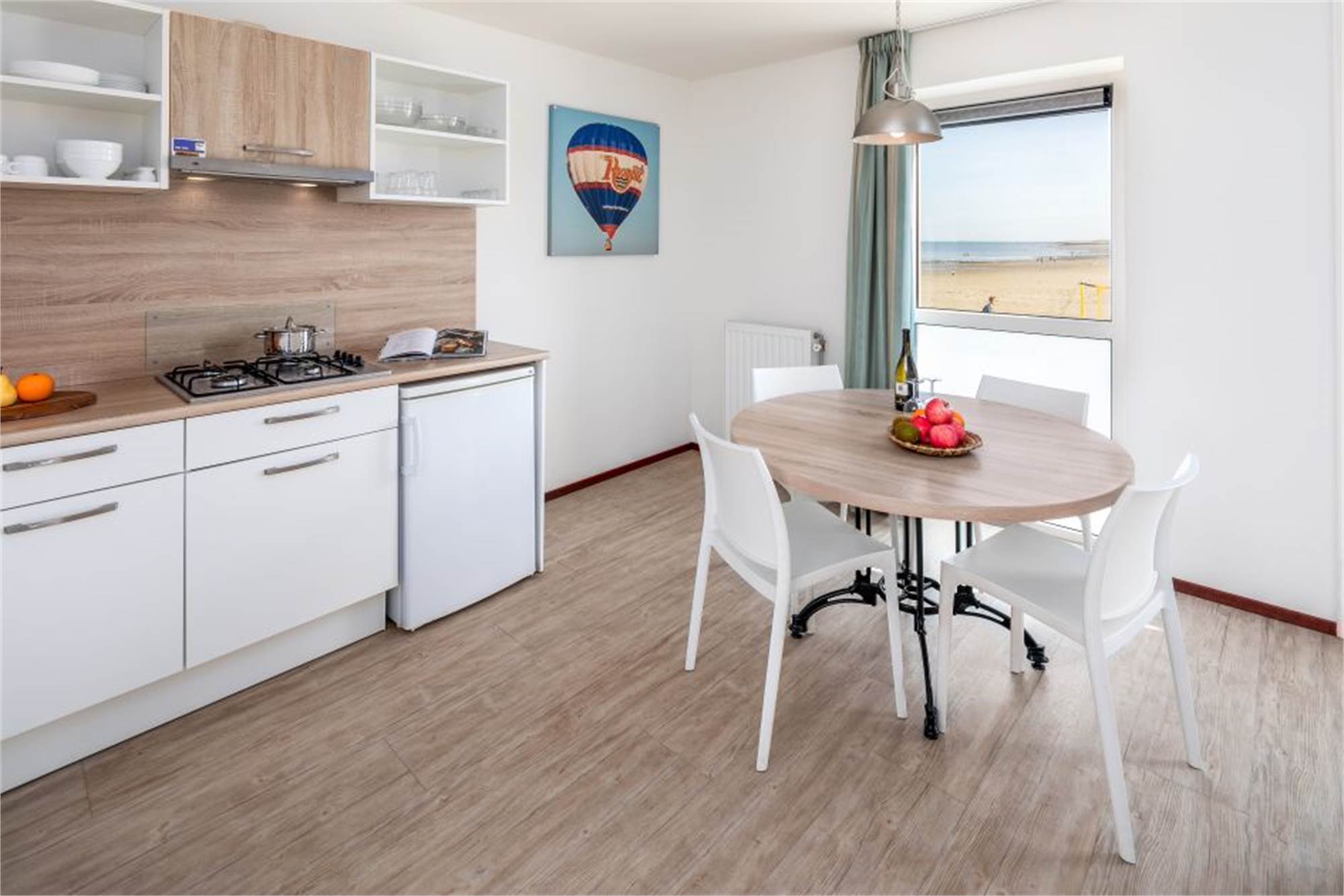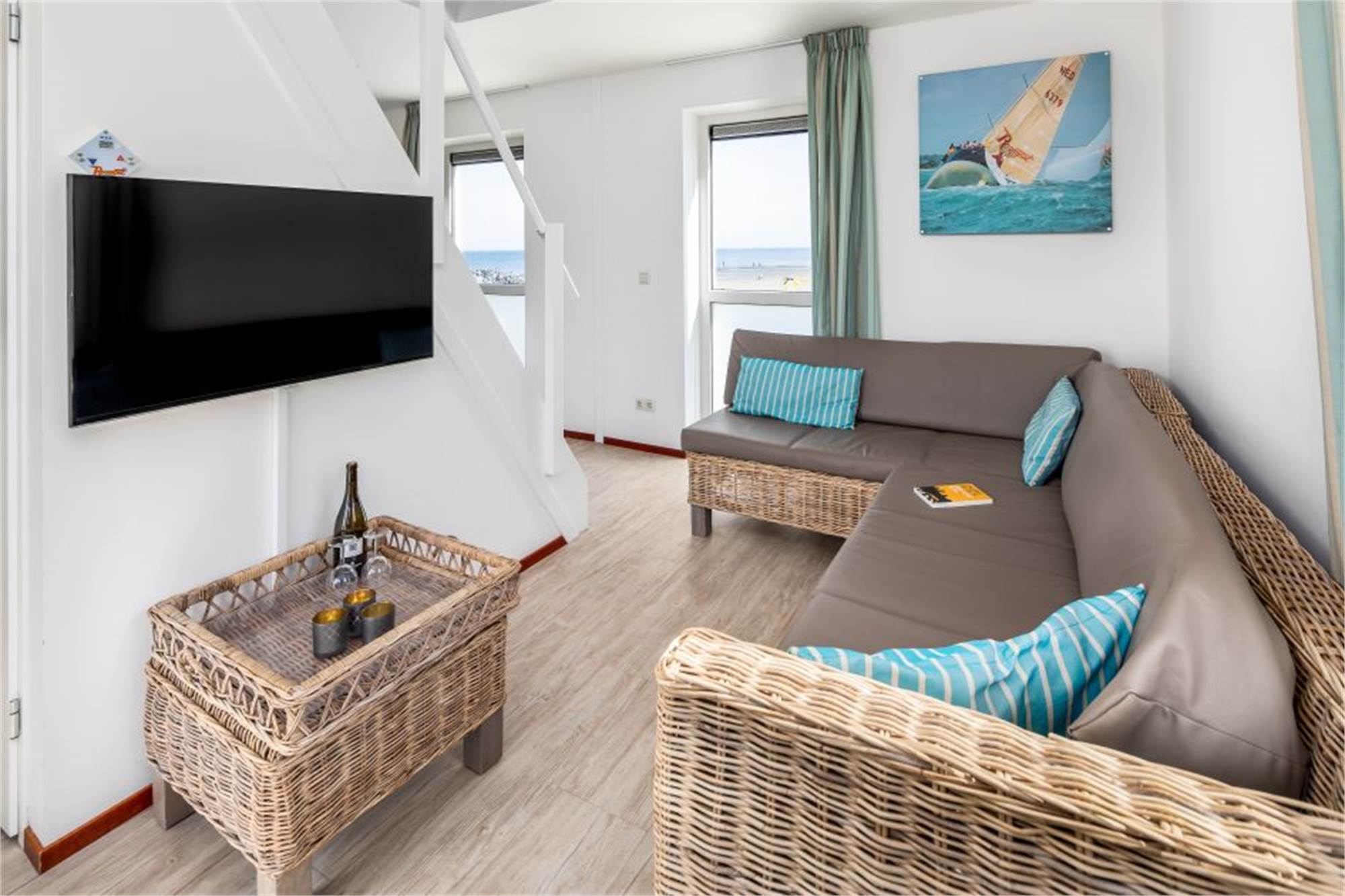 Die Beach Houses verfügen über eine Terrasse die über eine Treppe erreichbar ist. Die Terasse lässt sich mithilfe eines Treppengitters abschließen. Ein Kinderbett kann nur im Wohnzimmer aufgestellt werden. Sie können den Bollerwagen (während der Öffnungszeiten) kostenlos bei unseren Kollegen beim Fahrradvermietung abholen.