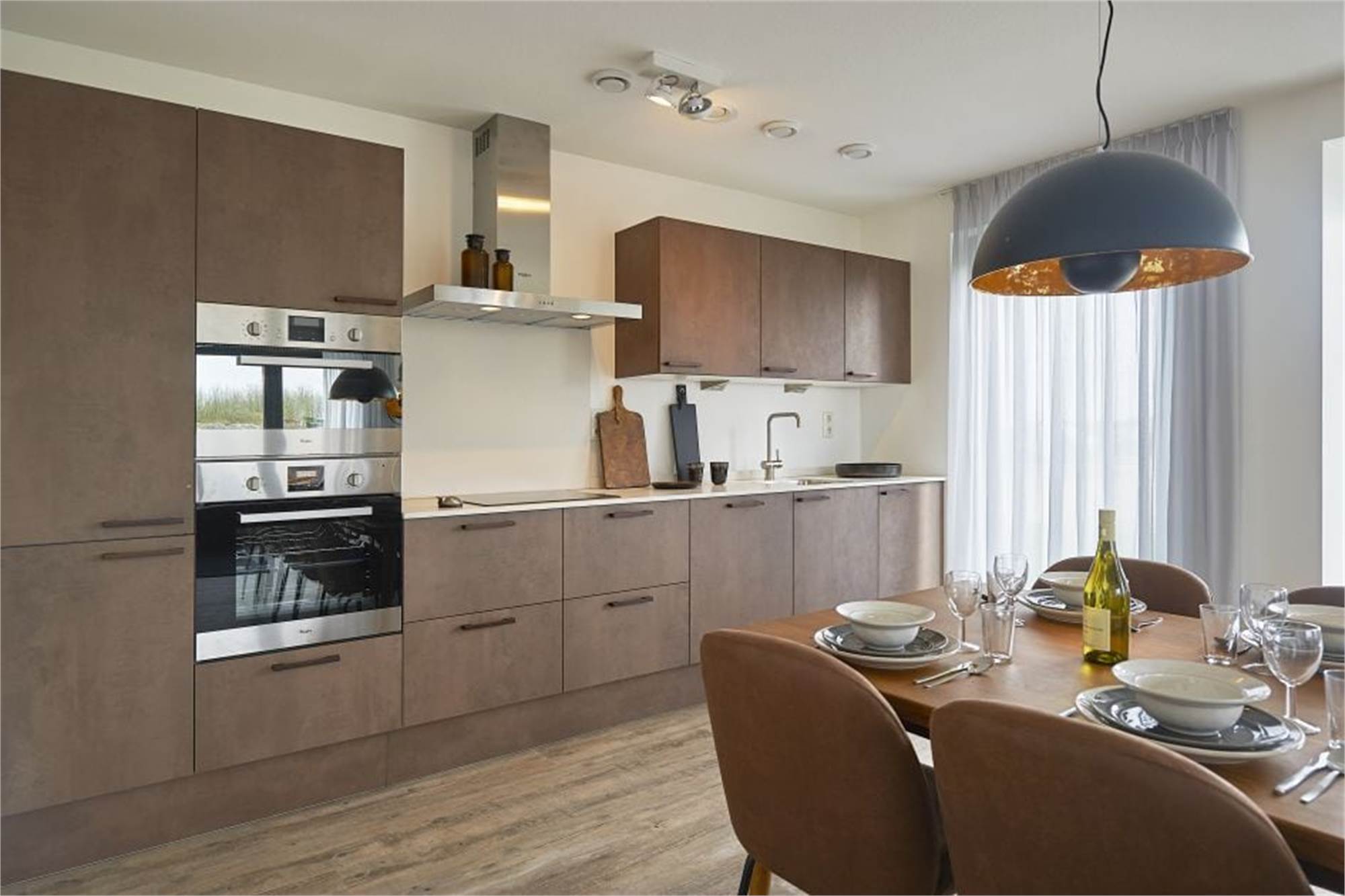 • Die Küche ist mit allen Annehmlichkeiten versehen, darunter ein Weinklimaschrank, eine Kombi-Mikrowelle, ein Kühlschrank mit Gefrierfach und ein Geschirrspüler. Kaffee-Liebhabern steht eine Kaffee-Ecke mit Kaffeemaschine zur Verfügung.