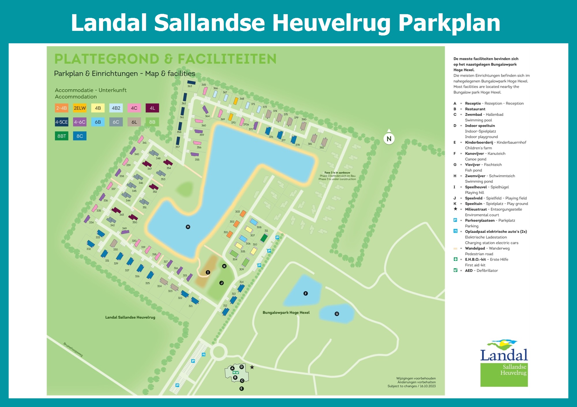 Aktueller und übersichtlicher Parkplan von Landal Sallandse Heuvelrug mit alle Unterkünfte und Einrichtungen, auch als PDF herunterladbar.