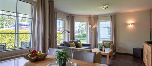 - Schlafzimmer mit zwei Boxspring-Einzelbetten, 2 Personen Softtopper und Flatscreen-TV