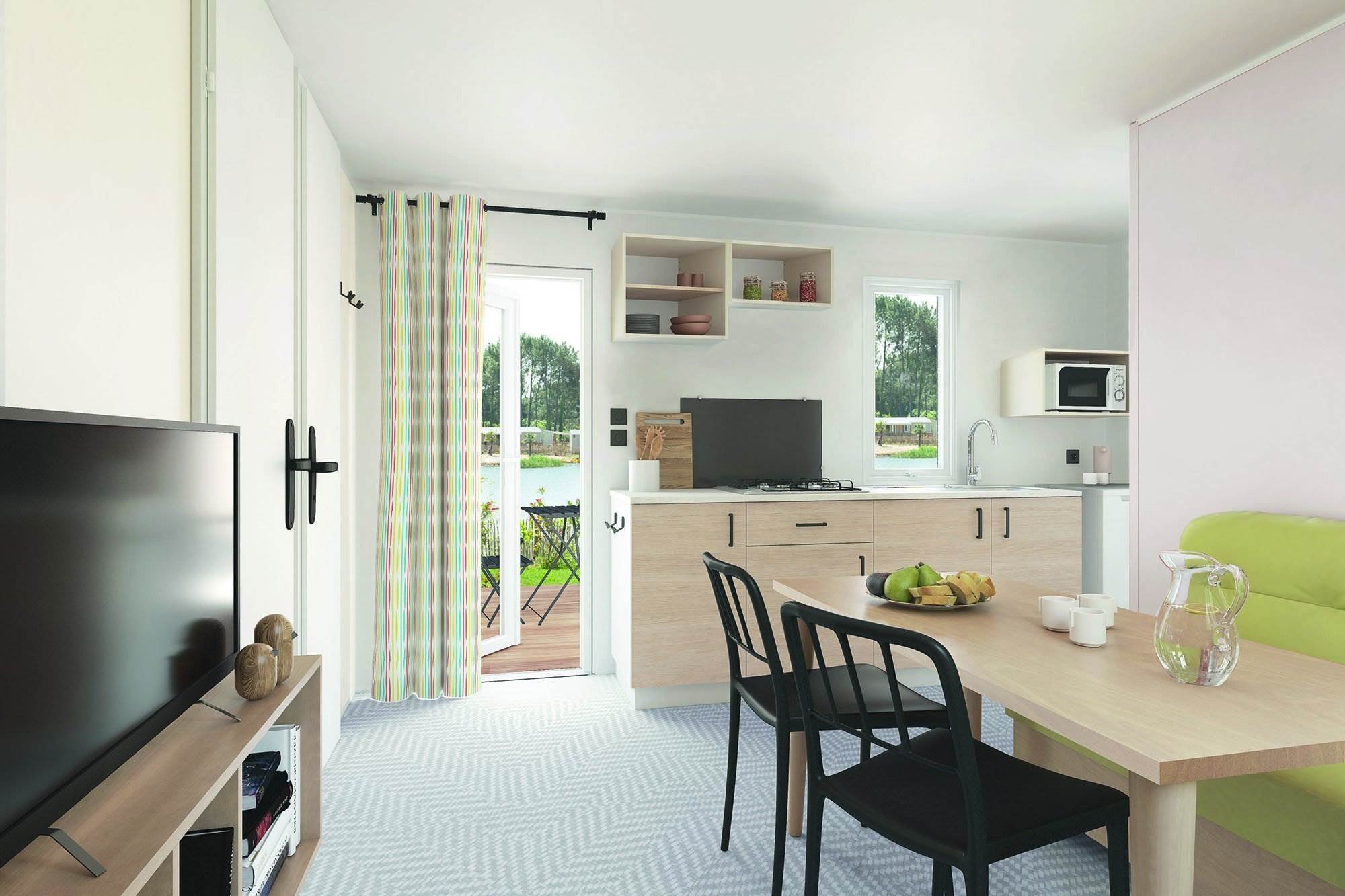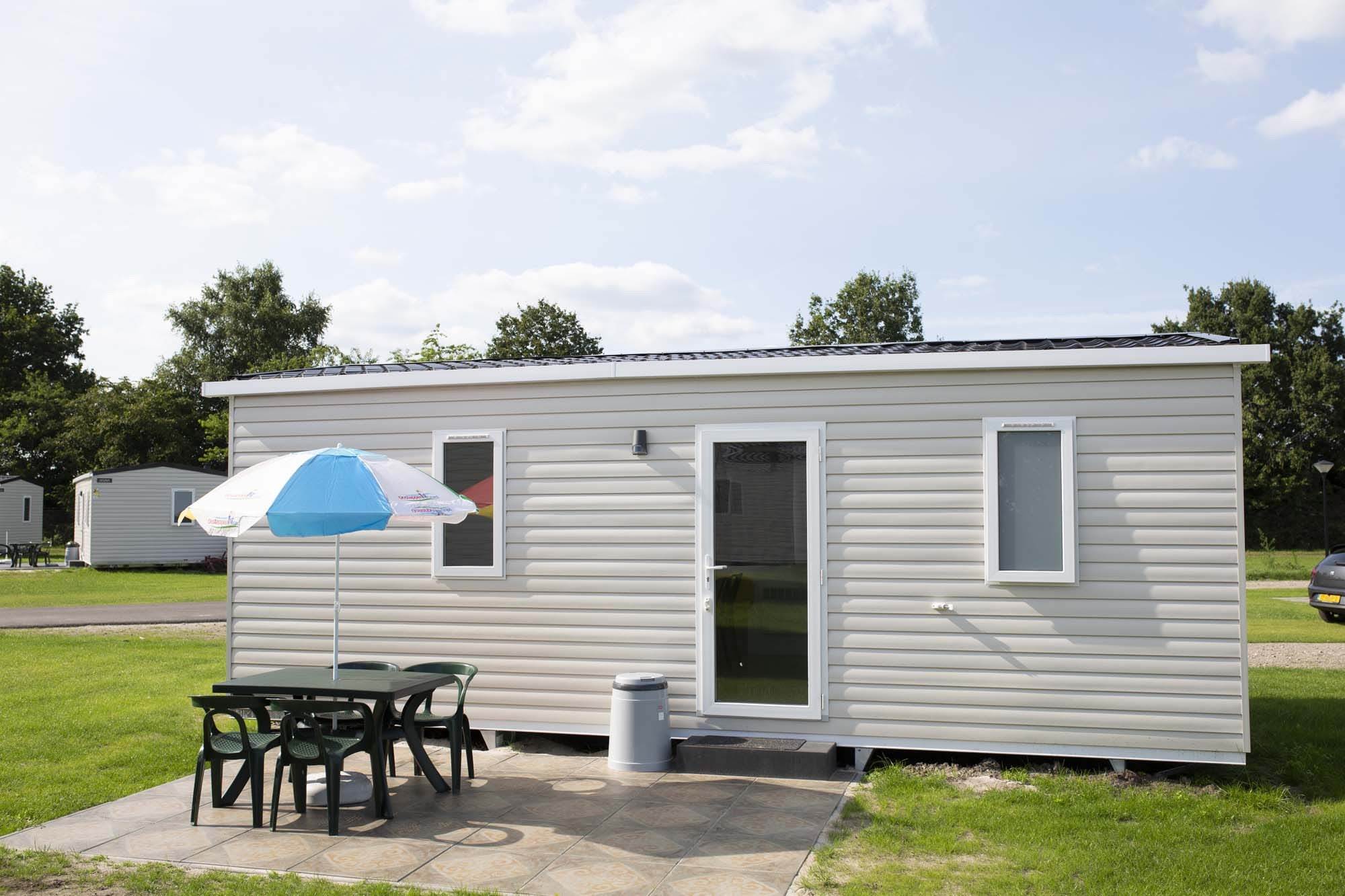 Ein Mobilheim ist ideal, um zu bleiben, wenn Sie während Ihres Urlaubs etwas mehr Luxus haben möchten. Genießen Sie das wunderbare Urlaubsgefühl, bei dem Sie nichts aufbauen oder mitnehmen müssen. Ihr Mobilheim ist immer mit einer möblierten Sitzecke mit TV und Herd, Küche mit Kühlschrank, Mikrowelle, Kaffeemaschine, 4-Flammen-Herd und Küchenausstattung, Bad mit WC, Waschbecken und Dusche und einem kompletten Gartenset inklusive Sonnenschirm "Oostappen Gruppe" ausgestattet.