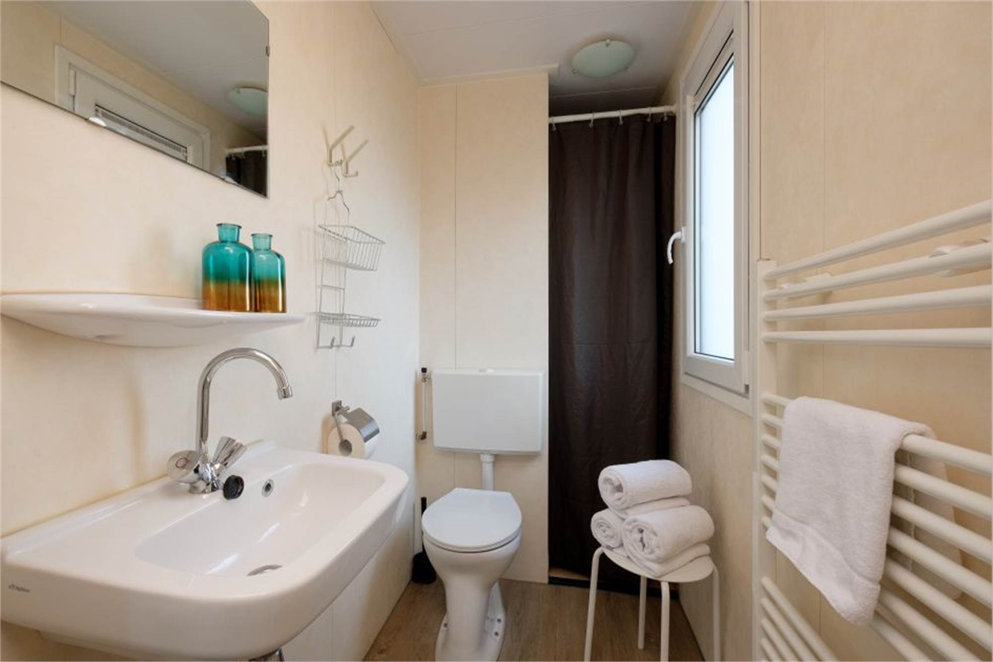 Dieses Chalet für 4 Personen liegt ganz in der Nähe des Strandes. Die ebenerdige Unterkunft bietet eine gemütliche Sitzecke und eine Küche mit u. a. Kühlschrank mit Gefrierfach und Kombi-Mikrowelle. Das Chalet verfügt außerdem über 2 Schlafzimmer – davon eins mit Etagenbett für 2 Personen und eins mit Doppelbett. Das Badezimmer ist mit Dusche und Toilette ausgestattet. Im Außenbereich befinden sich Gartenmöbel und die Nutzung von WiFi ist gratis.