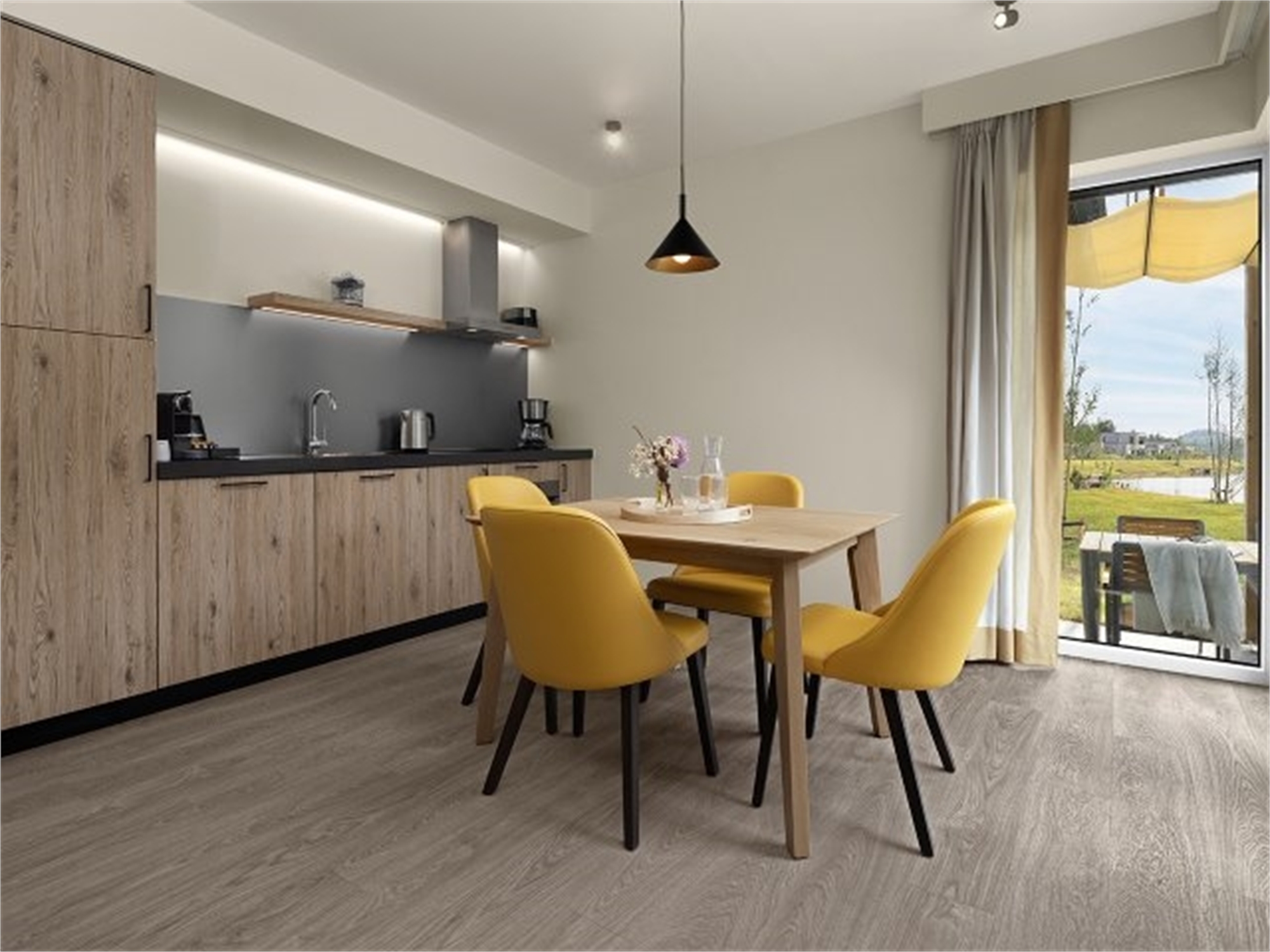 Von Ihrer überdachten Privatterrasse schweift Ihr Blick über den See. Alle Häuser des Typs Ferienhaus am See liegen direkt am Wasser. Das Panorama genießen Sie auch von innen durch die großen Fenster!