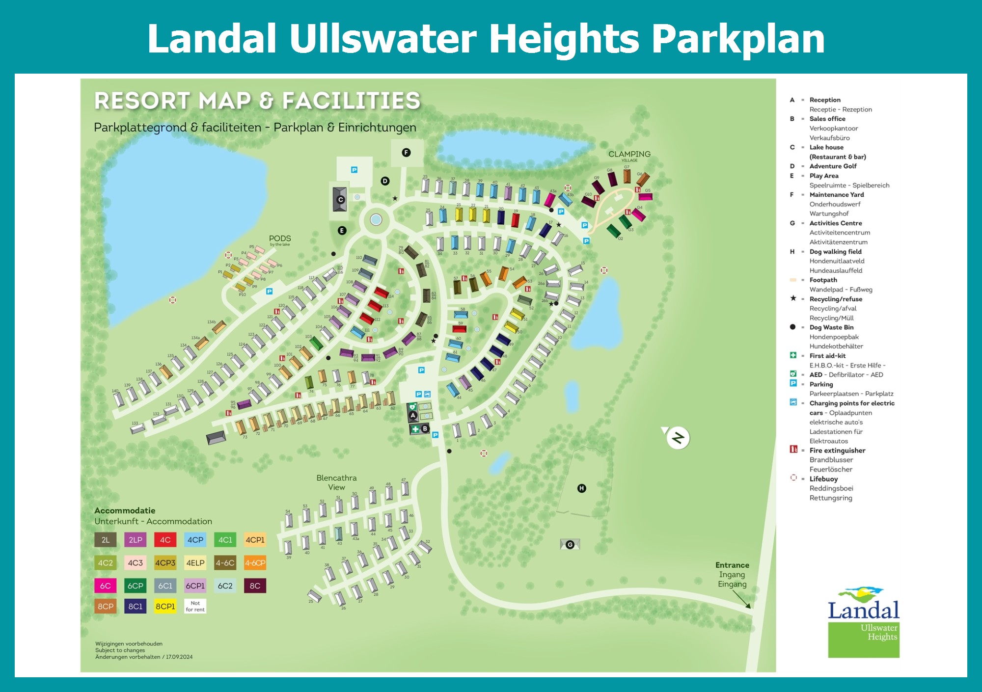 Aktueller und übersichtlicher Parkplan von Landal Ullswater Heights mit alle Unterkünfte und Einrichtungen, auch als PDF herunterladbar.