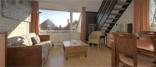 Dieses Appartement eignet sich für 3 Personen. Das Wohnzimmer ist eingerichtet mit Schlafcouch für eine Person, Flatscreen-TV mit DVD-Player sowie einem Balkon. Es gibt eine separate Küche mit Mikrowelle, Kaffeemaschine, Wasserkocher und Geschirrspüler. Badezimmer mit Whirlpool, Dusche, Waschtisch und Toilette. Im Obergeschoss befinden sich ein Schlafzimmer mit zwei Einzel-Boxspringbetten und ein zweites TV-Gerät im Elternschlafzimmer.