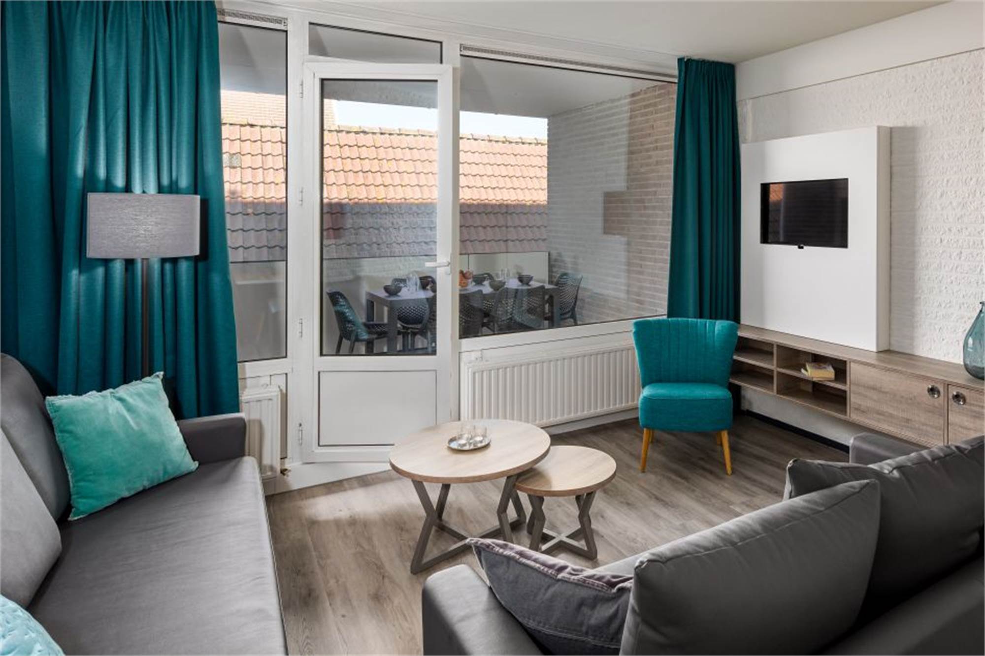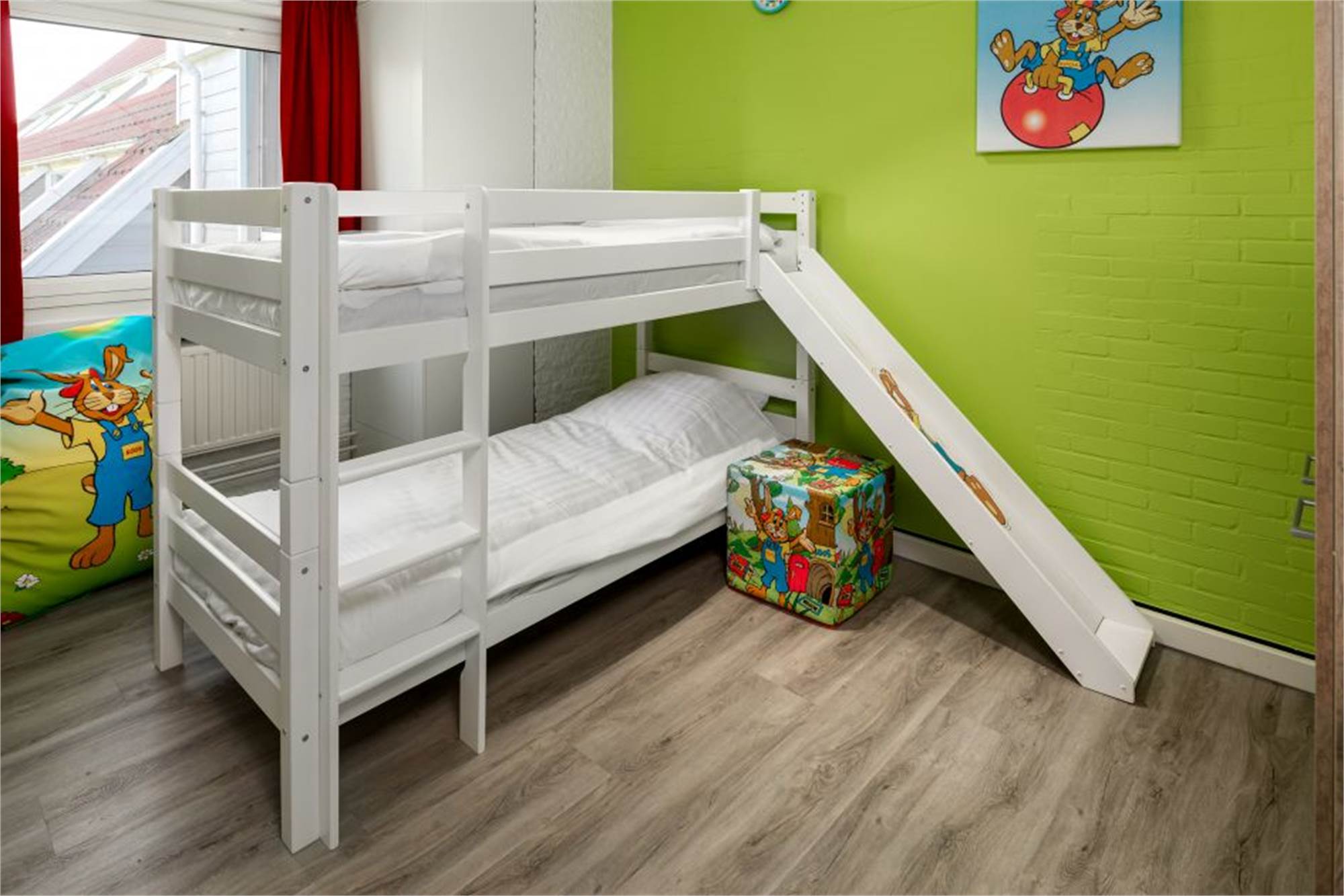 Dieses ebenerdige Appartement eignet sich für 6 Personen und ist mit verschiedenen Möbeln in Koos-Thematik eingerichtet. Das Wohnzimmer verfügt über eine Sitzecke mit Smart-TV und in der Küche befinden sich unter anderem eine Geschirrspülmaschine und eine Kombi-Mikrowelle. Es gibt insgesamt 3 Schlafzimmer, davon 1 mit 1 Etagenbett und 2 mit je 2 Einzelbetten. Das Badezimmer ist mit einer bodengleichen Dusche und einer Toilette ausgestattet. Das Appartement verfügt über einen möblierten Balkon. Ihr Auto können Sie auf dem zentralen Parkplatz abstellen. Sie können kostenlos das WiFi nutzen.