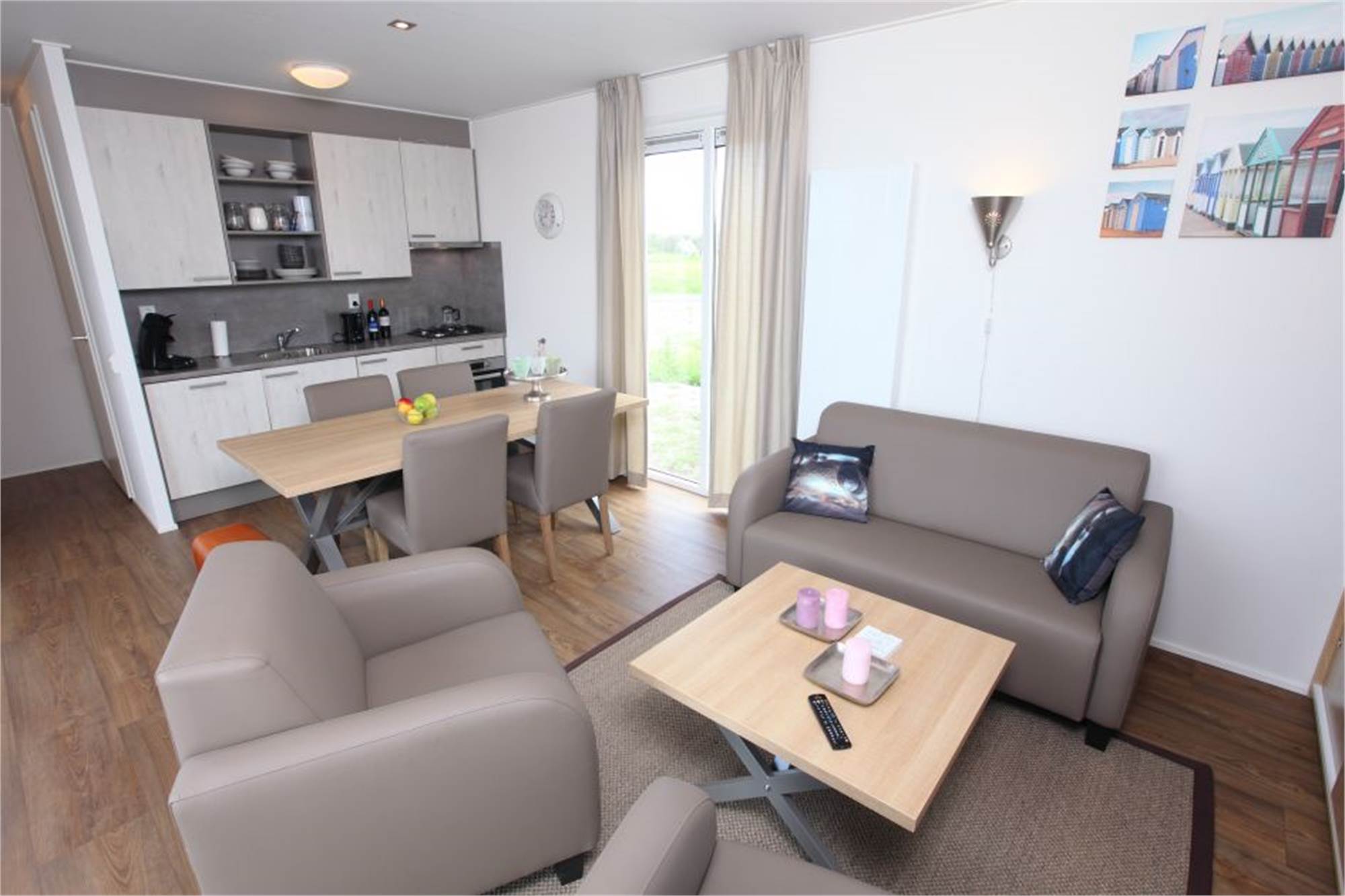 Diese ebenerdige, freistehende Lodge eignet sich für 4 Personen. Das Wohnzimmer verfügt über Smart-TV und einen separaten Essbereich. Die Küche ist u. a. mit Geschirrspüler, Kombi-Mikrowelle und Kaffeepadmaschine ausgestattet. Es gibt 2 Schlafzimmer mit je 2 Einzel-Boxspringbetten sowie 2 Badezimmer mit Dusche. Im Außenbereich finden Sie einen schönen Garten mit Gartenmöbeln und eine Parkmöglichkeit für ein Auto. Die Nutzung von WiFi ist gratis. Einige Lodges sind luxuriös ausgestattet mit Waschmaschine, Trockner, Fernseher im Schlafzimmer, Lounge-Set und Sonnenliegen. Diese Lodges können bevorzugt gebucht werden.