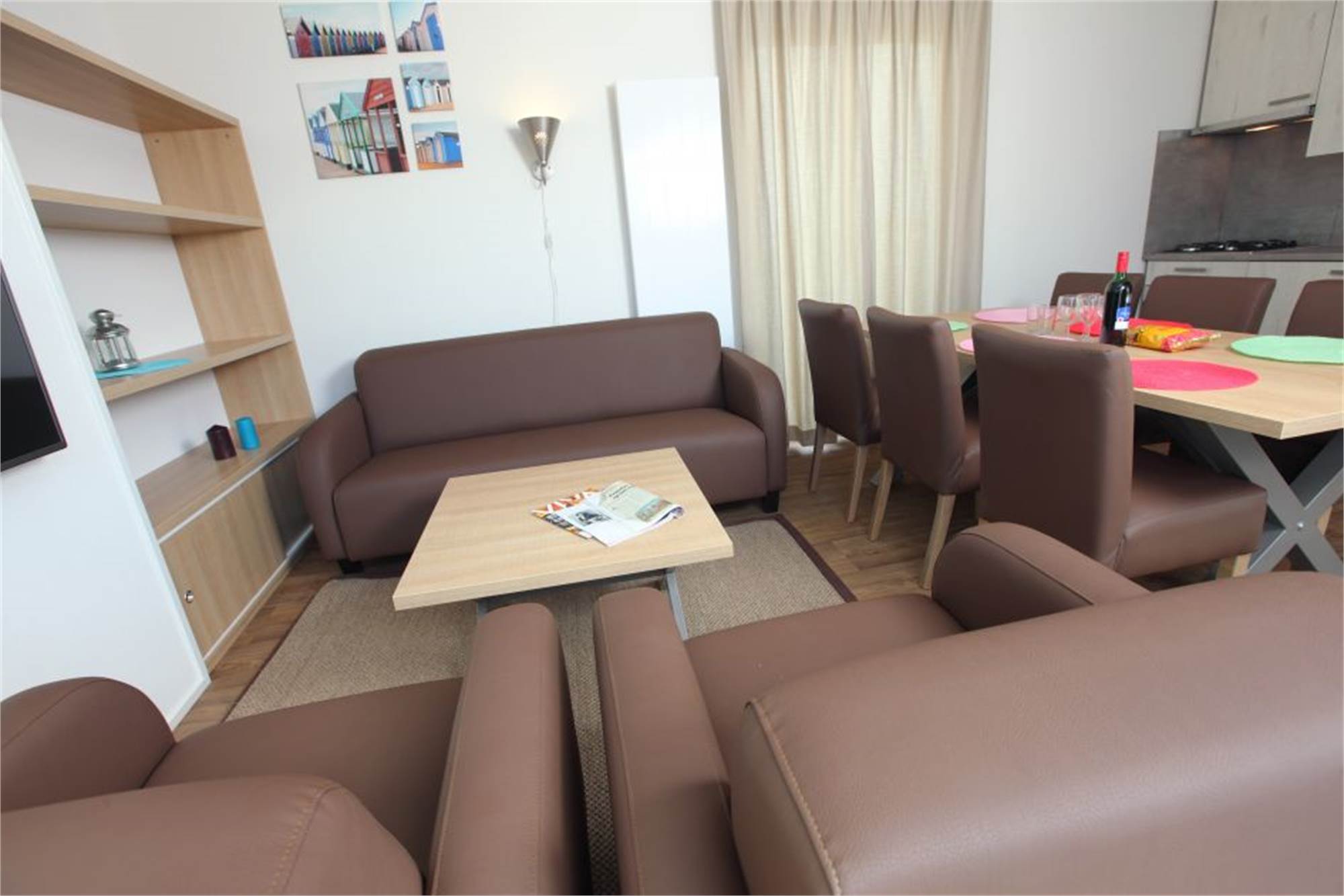 Diese ebenerdige, freistehende Lodge eignet sich für 6 Personen. Das Wohnzimmer verfügt über Smart-TV und einen separaten Essbereich. Die Küche ist u. a. mit Geschirrspüler, Kombi-Mikrowelle und Kaffeepadmaschine ausgestattet. Es gibt 3 Schlafzimmer – 2 davon mit je 2 Einzel-Boxspringbetten und eins mit Etagenbett sowie ein Badezimmer mit Dusche. Im Außenbereich finden Sie eine Parkmöglichkeit für ein Auto und die Nutzung von WiFi ist gratis. Einige Lodges sind luxuriös ausgestattet mit Waschmaschine, Trockner, Fernseher im Schlafzimmer, Lounge-Set und Sonnenliegen. Diese Lodges können bevorzugt gebucht werden.
