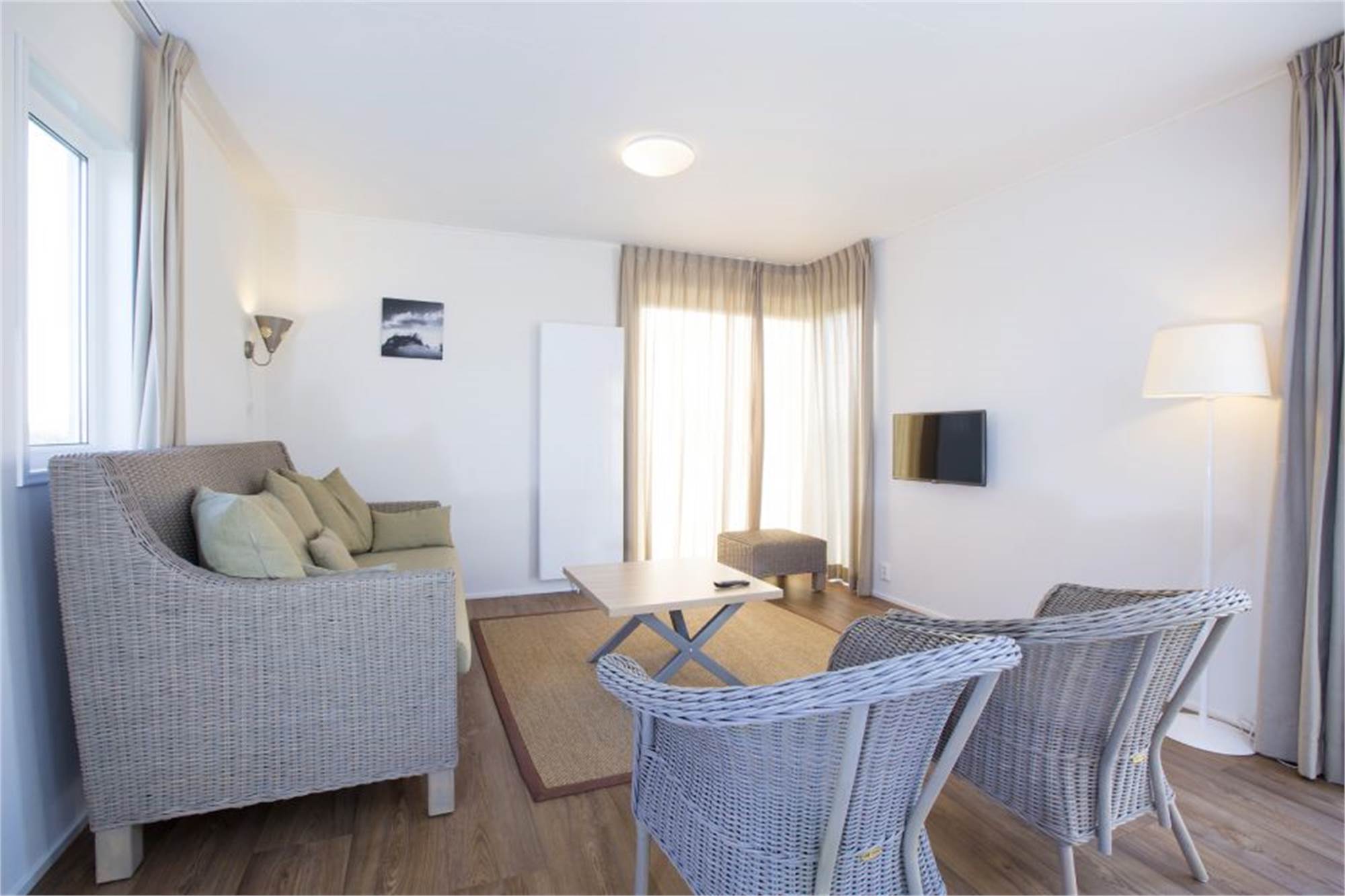 Einige Lodges sind luxuriös ausgestattet mit Waschmaschine, Wäschetrockner, Fernseher im Schlafzimmer, Lounge-Set und Sonnenliegen. Diese Lodges können unter Vorzugsangabe gebucht werden.