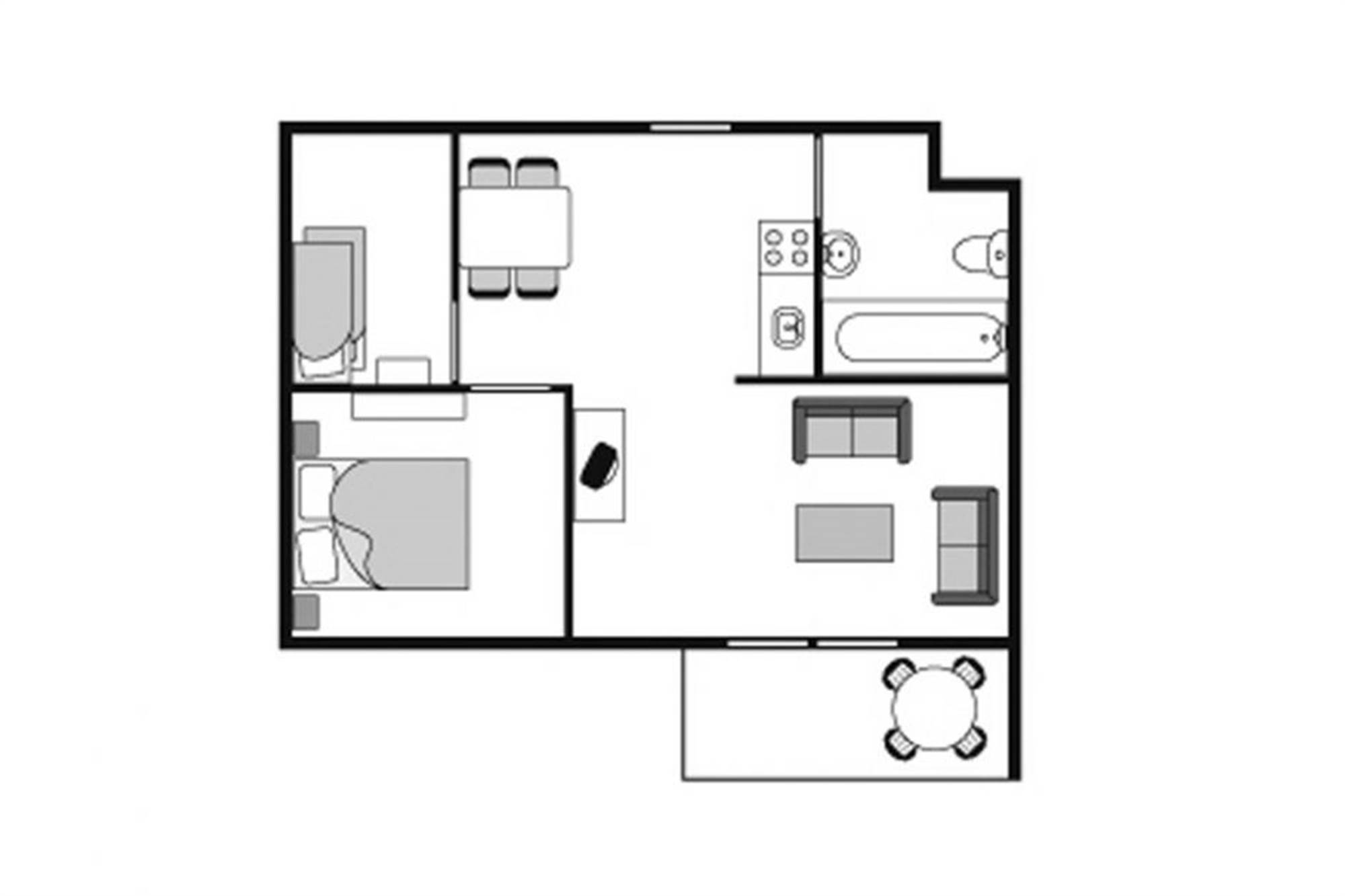 Einteilung: Wohnzimmer mit Flatscreen-TV und DVD-Spieler, offene Küche mit Mikrowelle, Kühlschrank und Kaffeemaschine. Badezimmer mit Badewanne oder Dusche, Waschtisch und Toilette. Zwei Schlafzimmer, davon eines mit zwei Einzelbetten und eines mit Etagenbett. Terrasse mit Gartenmöbeln.