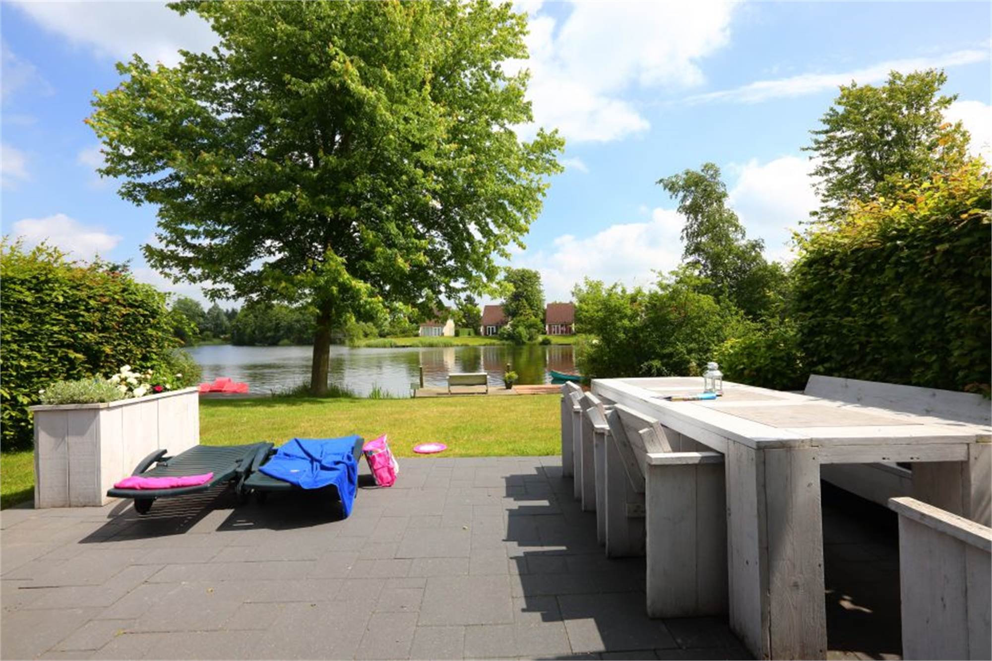 Alle Bungalows verfügen über einen Garten mit Terrasse, Gartenmöbeln und Sonnenschirm. Es gibt Parkmöglichkeiten für zwei Autos. Die Einrichtung/Einteilung sowie die Außenseite der Bungalows kann untereinander variieren.