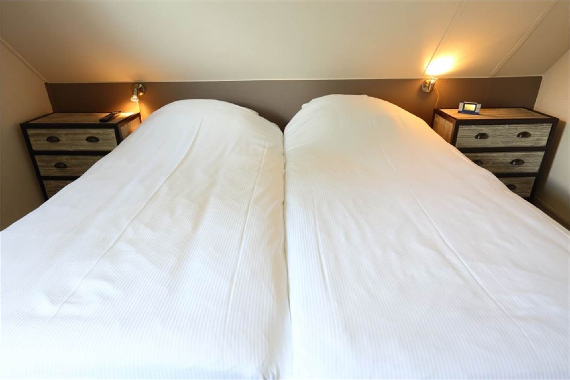 Schlafzimmer: Dieser Unterkunftstyp verfügt entweder über ein Schlafzimmer im Erdgeschoss und zwei Schlafzimmer im Obergeschoss oder drei Schlafzimmer im Obergeschoss mit jeweils zwei Einzelbetten.