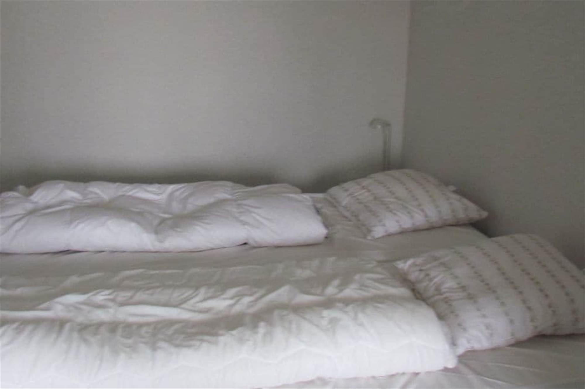 Obergeschoss: Ein Schlafzimmer mit Doppelbett und ein Schlafzimmer mit zwei Etagenbetten.