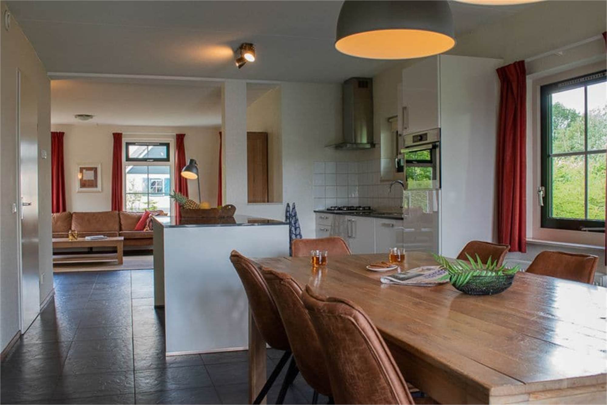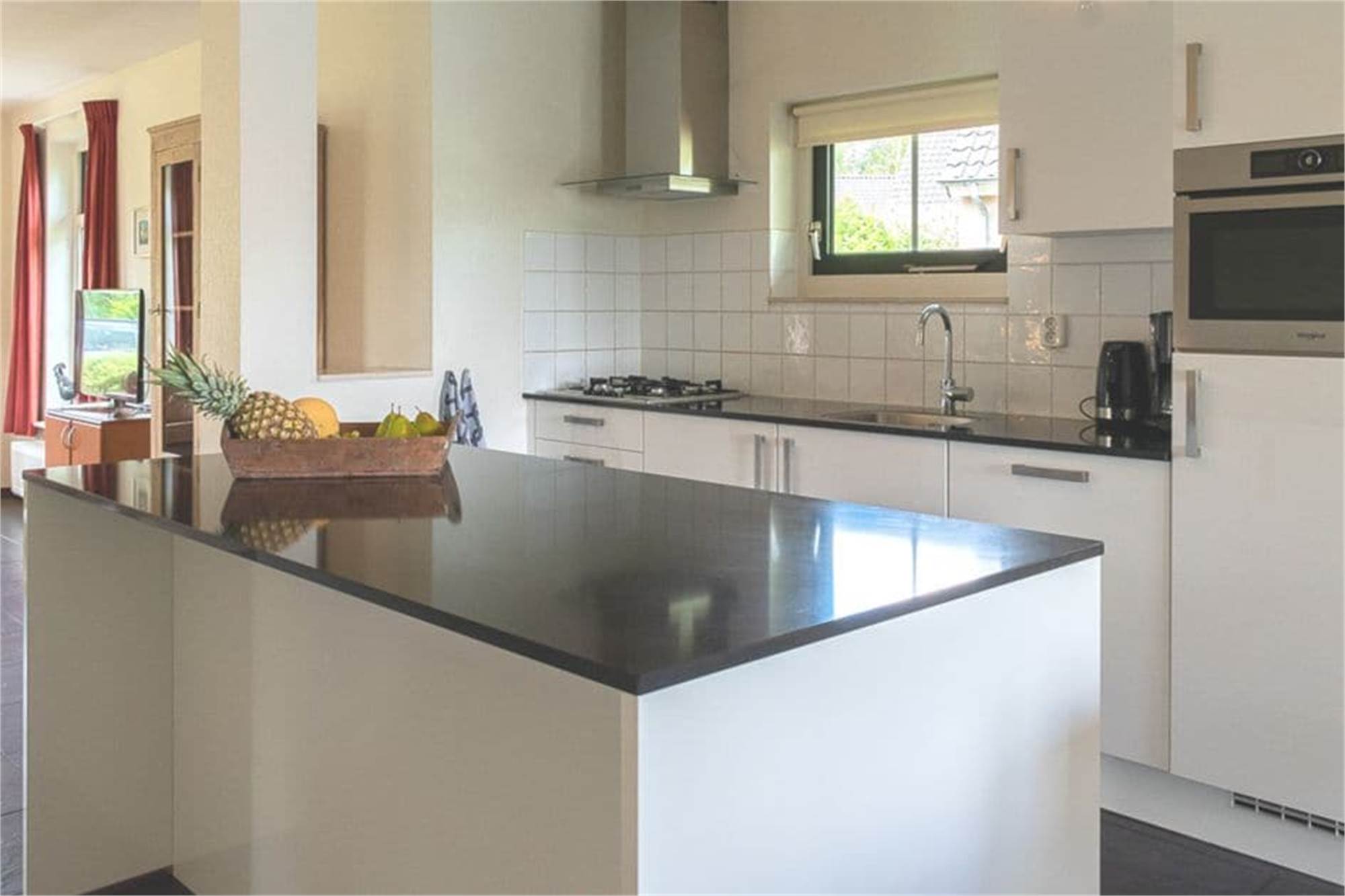Erdgeschoss: Wohnzimmer mit WiFi (gratis) und Flatscreen-TV mit deutschen TV-Sendern, DVD-Player. Offene Küche mit Kühlschrank mit Gefrierfach, Kombi-Mikrowelle, Kaffeemaschine, Wasserkocher und Geschirrspüler. Badezimmer mit Dusche oder Badewanne. Ein Schlafzimmer mit zwei Einzelbetten. Abstellraum mit Ladestation für Elektro-Fahrräder.