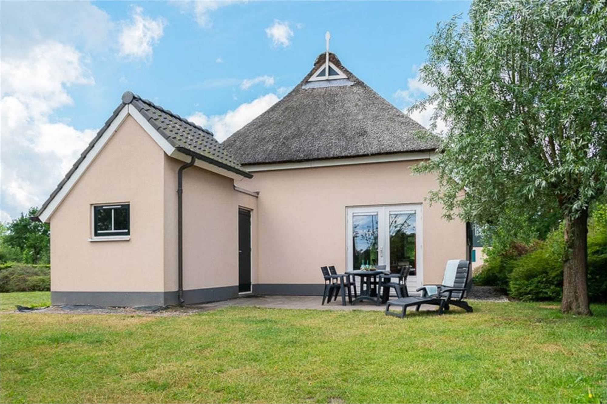 Alle Bungalows verfügen über einen Garten mit Terrasse, Gartenmöbeln und Sonnenschirm. Es gibt Parkmöglichkeiten für zwei Autos. Die Einrichtung/Einteilung sowie die Außenseite der Bungalows kann untereinander variieren.