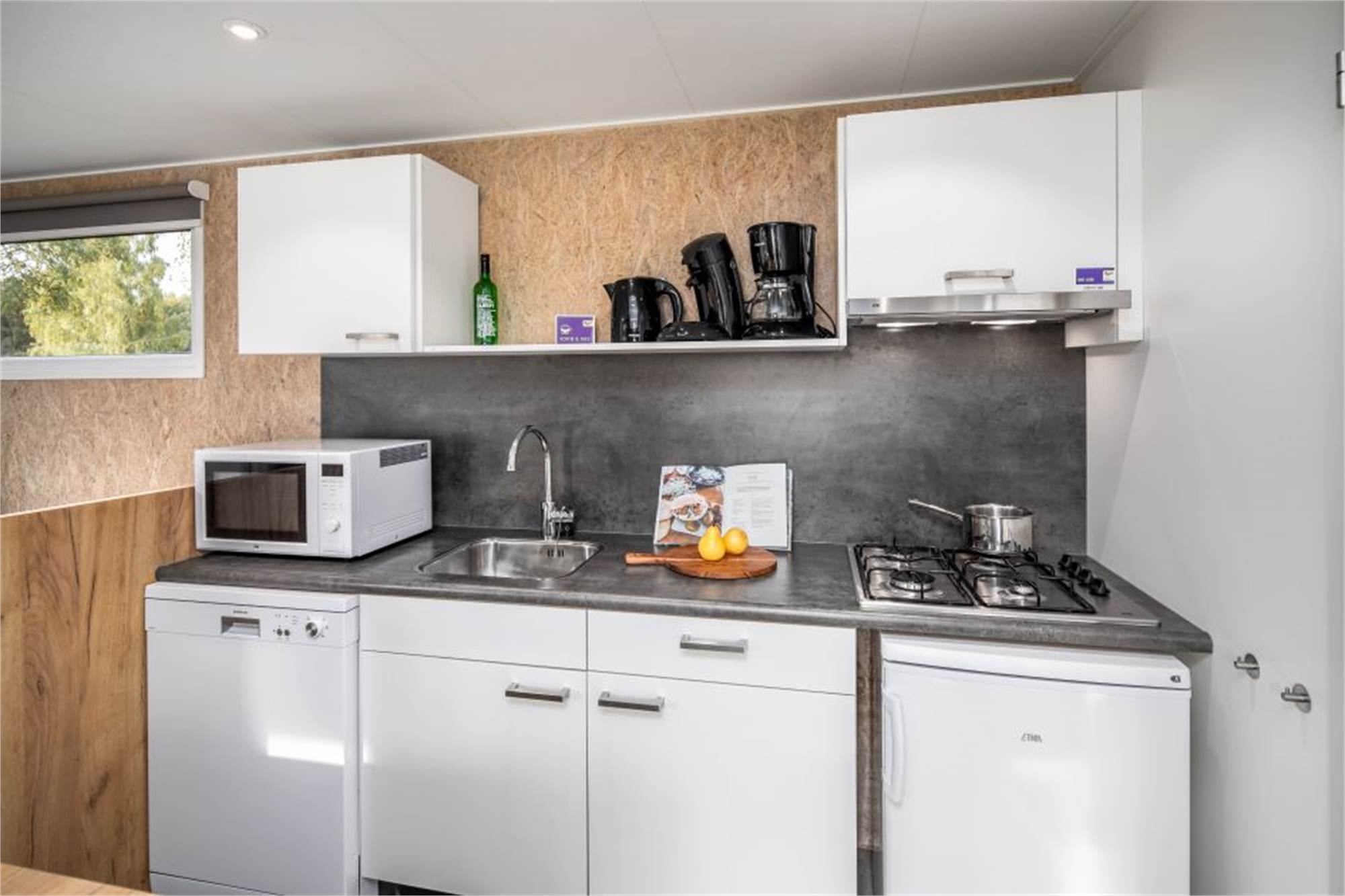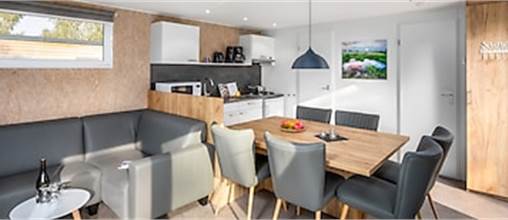 Dieses freistehende Chalet eignet sich für 6 Personen und verfügt u. a. über ein Wohnzimmer mit Essbereich und Küche. Die Küche ist u. a. mit Geschirrspüler, Kaffeemaschine und Mikrowelle ausgestattet. Außerdem gibt es 3 Schlafzimmer, 2 zimmer mit 2 Boxspringbetten und 1 zimmer mit Etagenbett, sowie ein Badezimmer mit Toilette und Dusche. Im Außenbereich finden Sie einen Garten, eine möblierte Terrasse und eine Parkmöglichkeit. Die Nutzung von WiFi ist gratis.