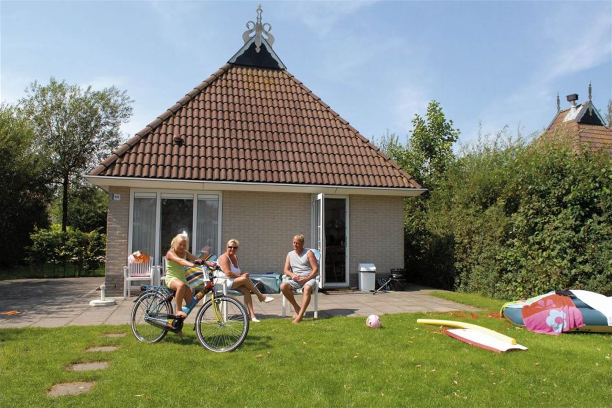 Dieser freistehende Bungalow liegt am Wasser und ist für 8 Personen geeignet. Es gibt ein Wohnzimmer mit Fernseher und eine offene Küche mit Kaffeemaschine und Mikrowelle. Es gibt insgesamt 3 Schlafzimmer und 2 Badezimmer. Im Erdgeschoss befinden sich 1 Schlafzimmer und 1 Badezimmer. Im Obergeschoss befinden sich 2 Schlafzimmer und 1 Badezimmer. Die Schlafzimmer sind mit Einzel- oder Doppelbetten ausgestattet und das Badezimmer verfügt über eine Dusche oder einen Whirlpool. Sowohl oben als auch unten gibt es eine Toilette. Es gibt einen Garten mit möblierter Terrasse und Parkplatz.