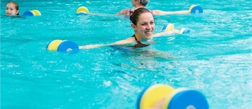 Kombiniere Schwimmen im Wasser und Springen auf einem Trampolin! Ein lustiger Ansatz, um anders zu trainieren.