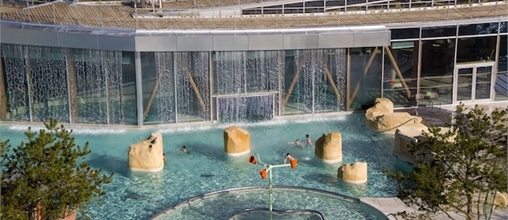 In unserer Außenlagune, die mit Geothermie beheizt wird, können Sie das ganze Jahr über draußen schwimmen und die wundervolle Aussicht auf den See genießen.