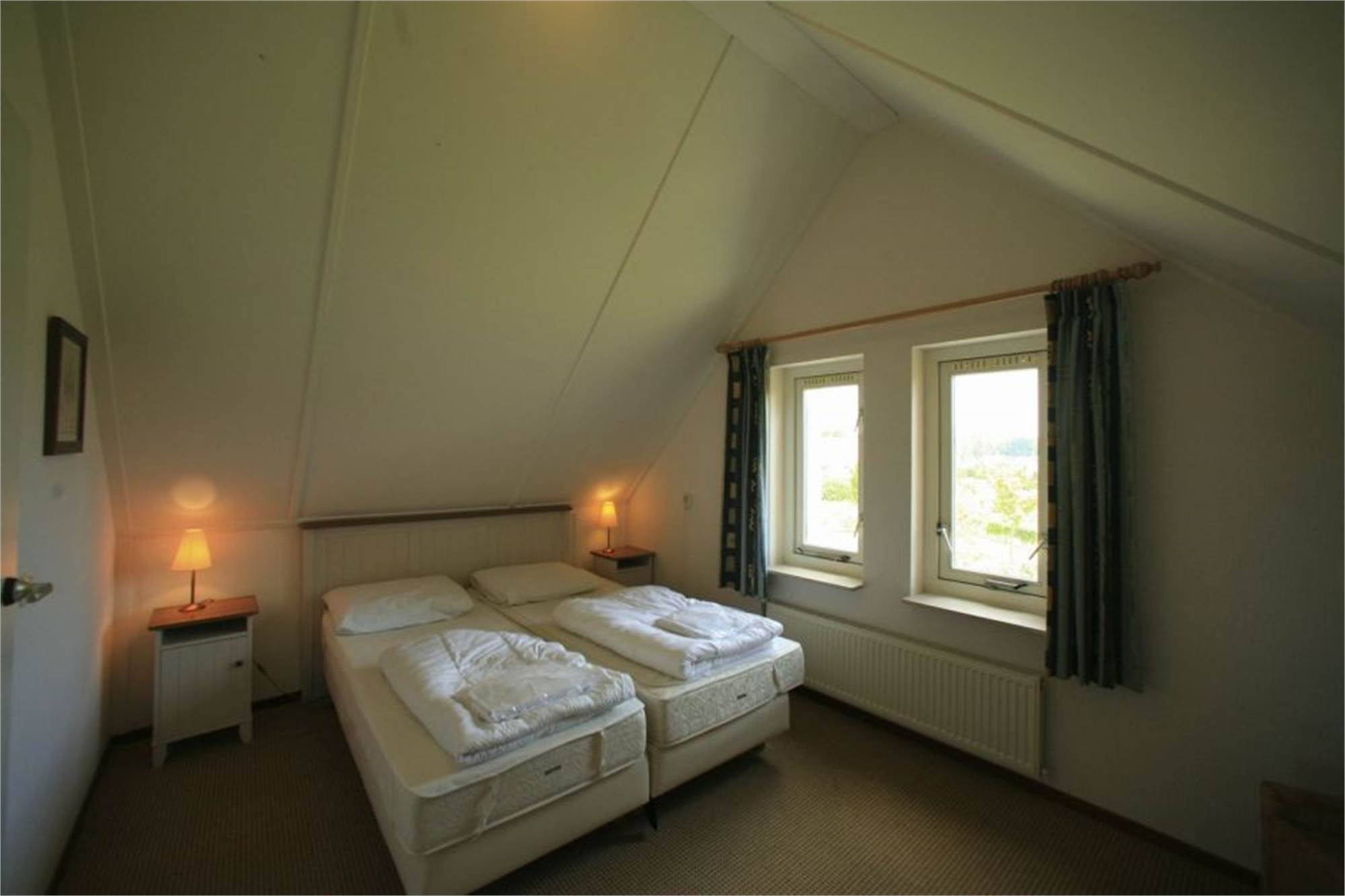 Obergeschoss: zwei Schlafzimmer mit zwei Einzelbetten.