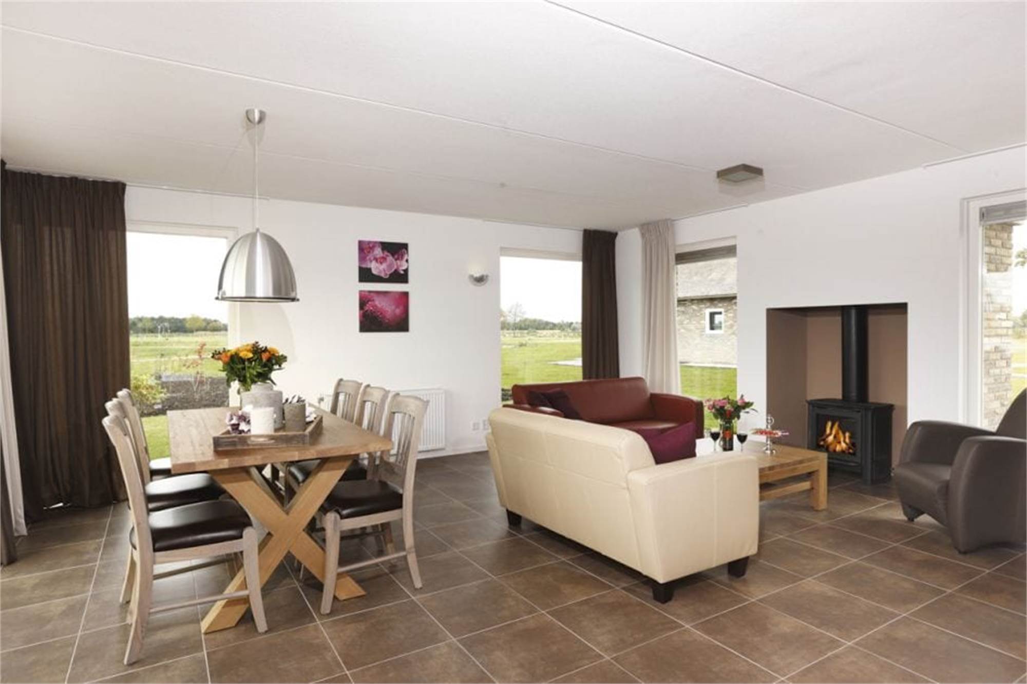 Erdgeschoss: Eingangsbereich und Flur. Wohnzimmer mit Sitz- und Essecke, Flatscreen-TV und Gasofen/Kamin. Offene Küche mit Geschirrspüler, Kaffeepadmaschine und Kombi-Mikrowelle.